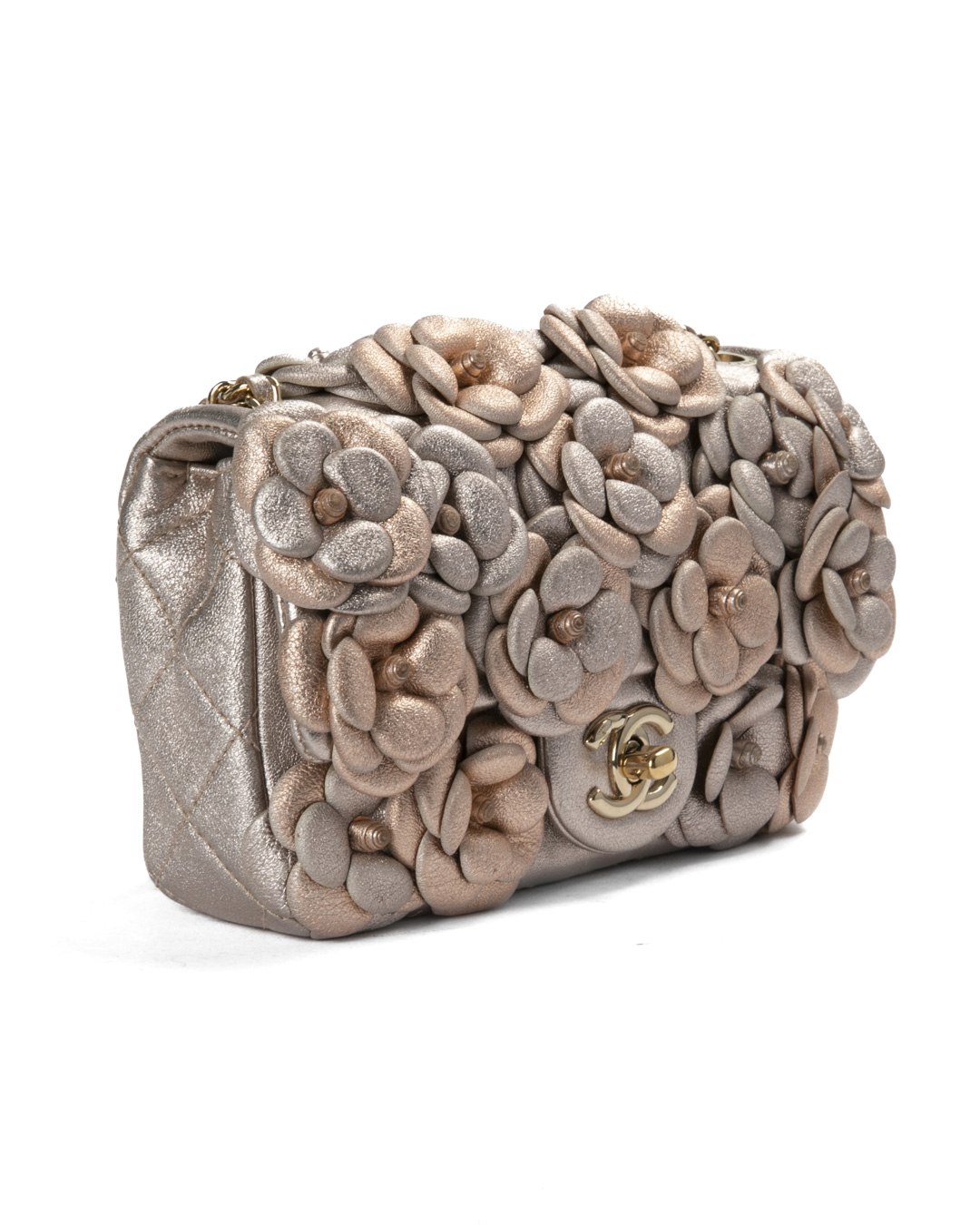 Chanel Mini Rectangular Camelia Metallizzata Rosa