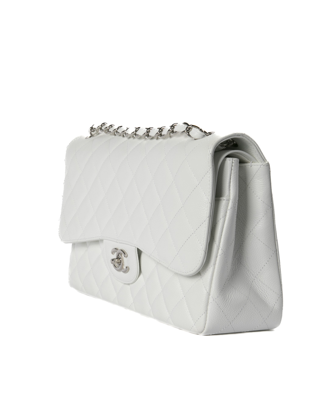 Chanel Jumbo Timeless Double Flap Caviar Bianco