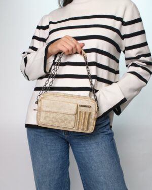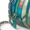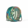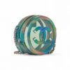 Borsa firmata Chanel, modello Round, realizzata in PVC multicolor e plasica trasparente, con hardware argento. Munita di una chiusura superiore con zip e di una tracolla in PVC e catena intrecciata per indossare la borsa a tracolla o a spalla . Arricchito dal classico logo del brand “CC” sulla parte frontale. Anno di produzione 2020, l’articolo si presenta in ottime condizioni.