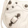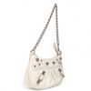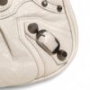 Borsa firmata Balenciaga, modello Le Cangole, misura Mini, realizzata in pelle bianca con hardware argentati. Dotata di una chiusura superiore a zip, internamente rivestita in tessuto nero, capiente per l’essenziale. Munita di un manico in catena per una portata a spalla e di una tracolla regolabile e rimovibile in pelle tono su tono per una portata a tracolla. L’articolo si presenta in ottime condizioni.