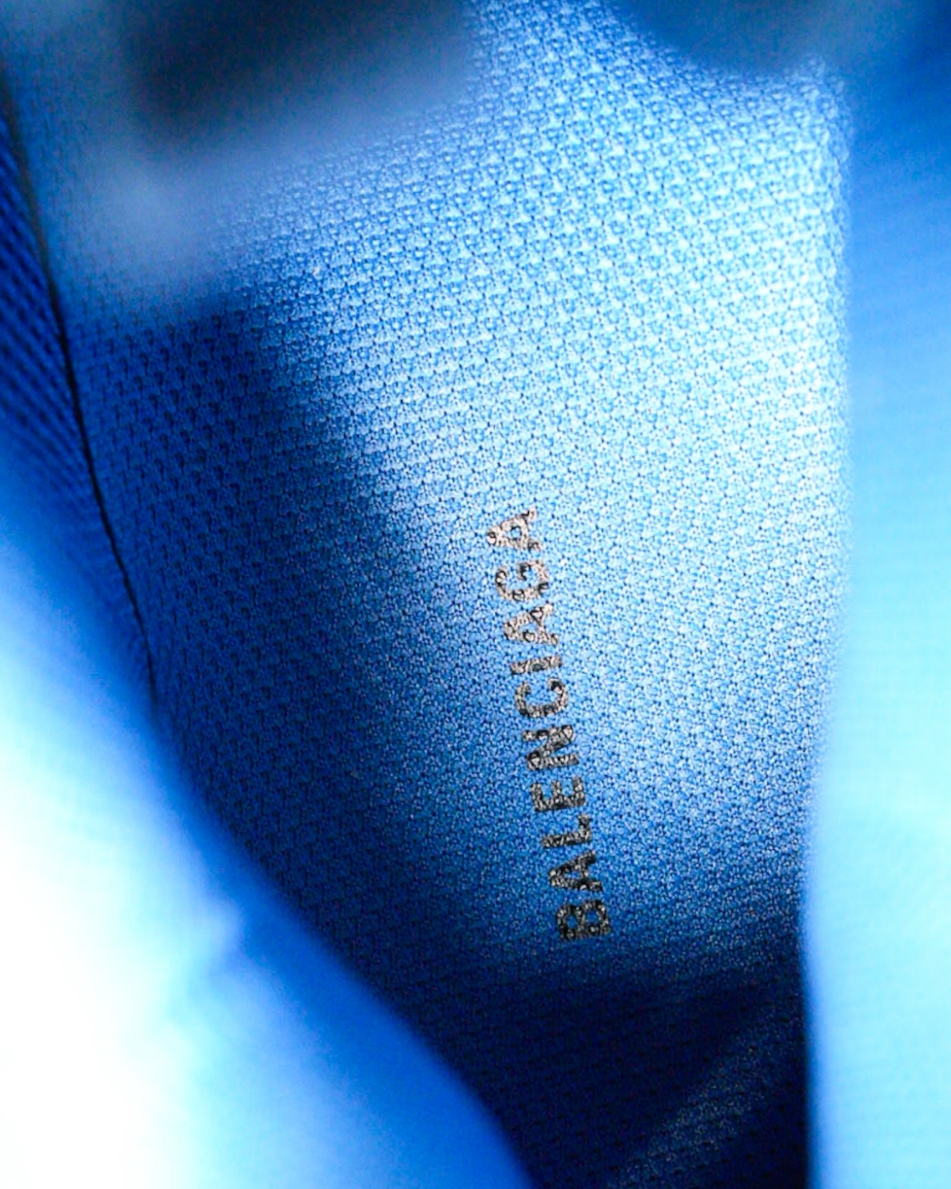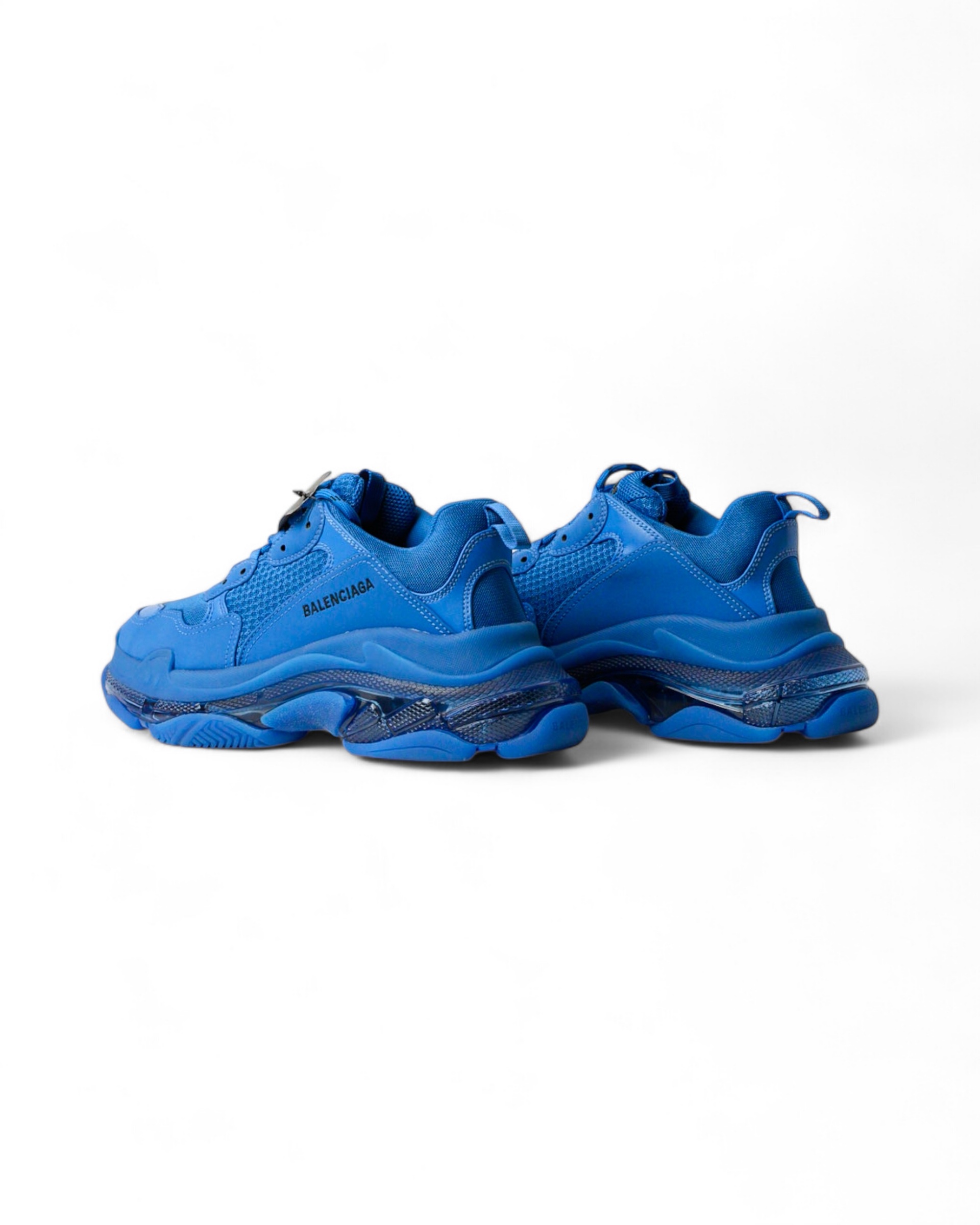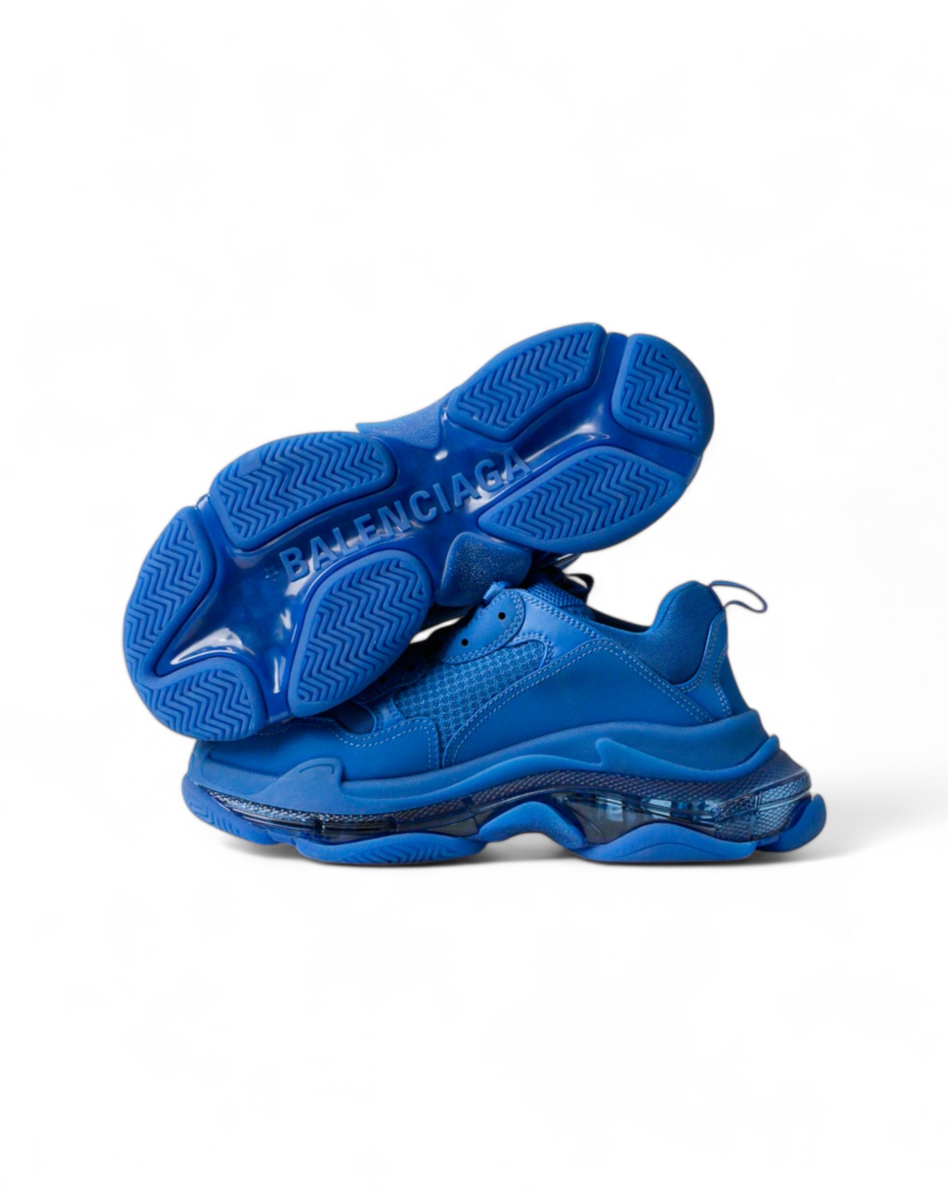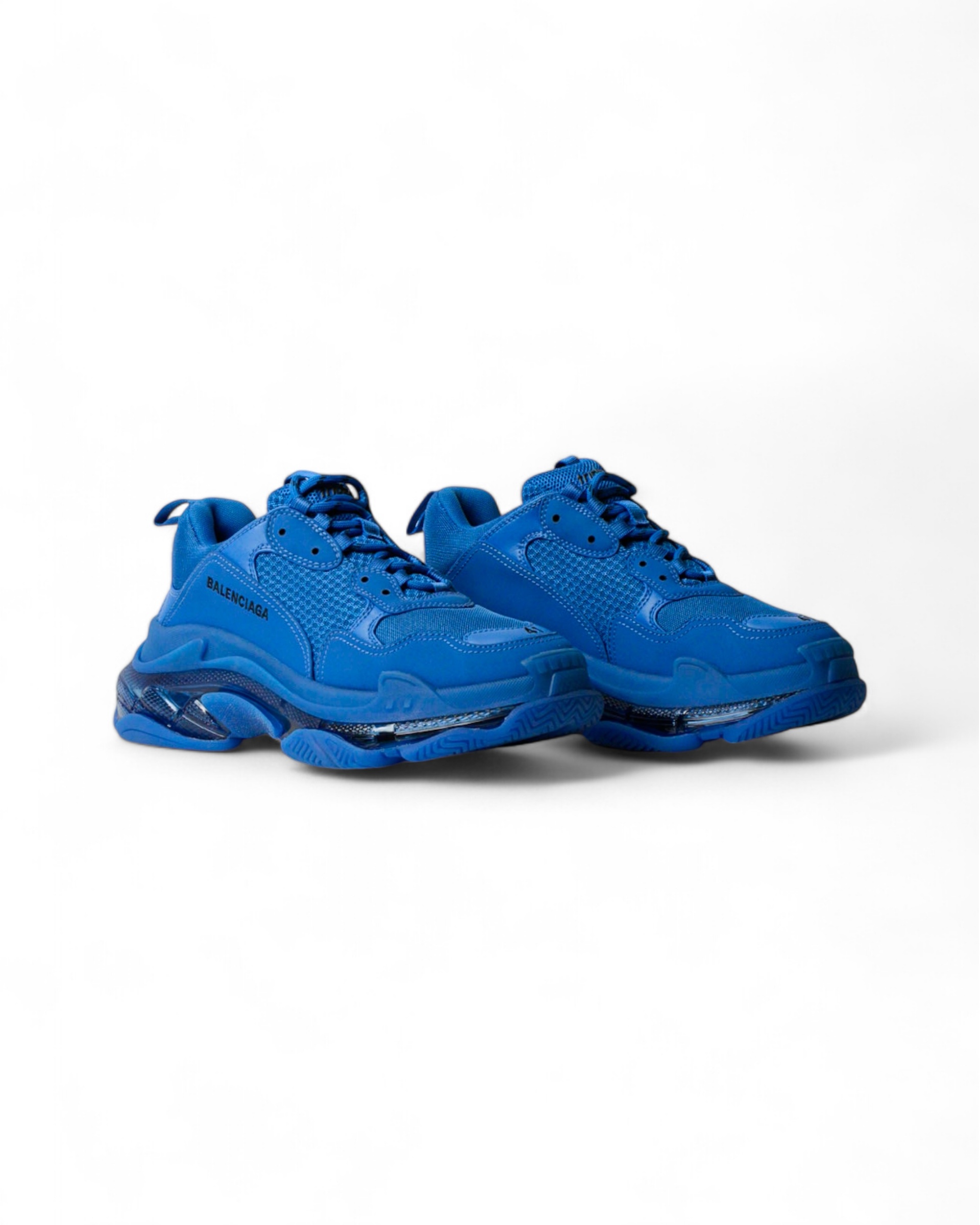 Sneakers firmate Balenciaga, modello Triple S, realizzate in tela e pelle nella colorazione blu acido. Dotate di una suola complessa a tre strati e sulla linguetta e impresso il logo “TripleS” in gomma. Munite di due passanti per lacci di cui uno funzionale. Complete di scatola, dustbag, misura 41IT. L’articolo si presenta in condizioni pari al nuovo.