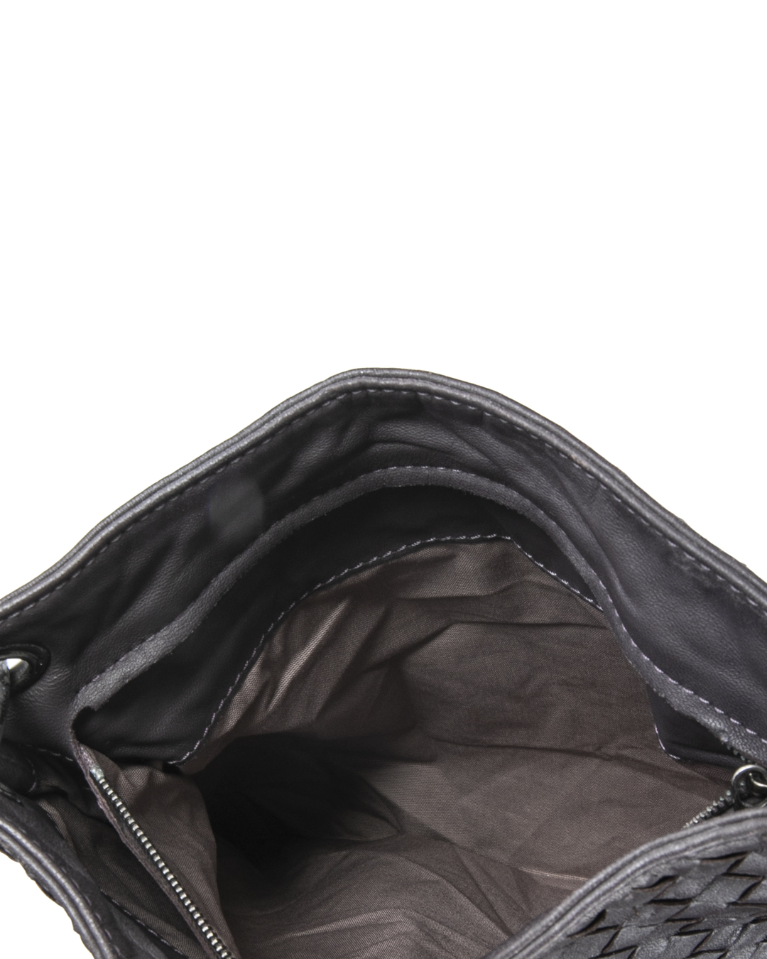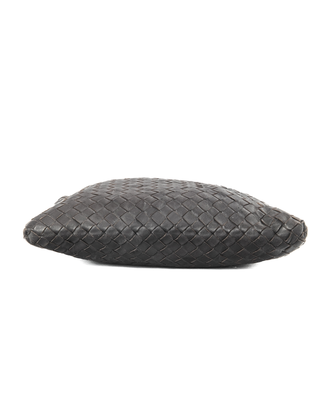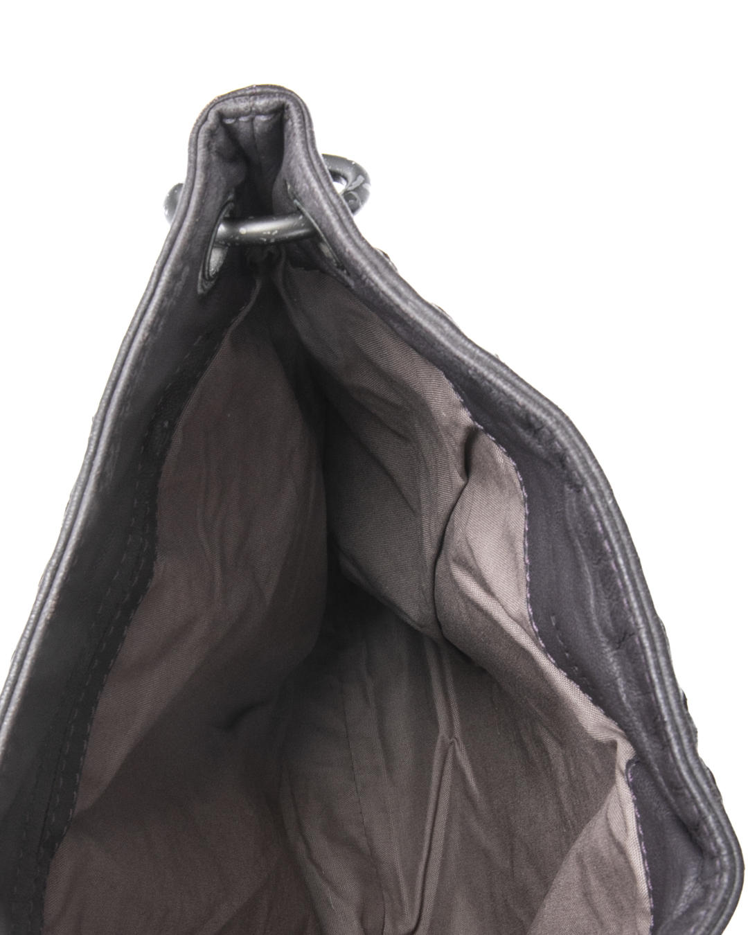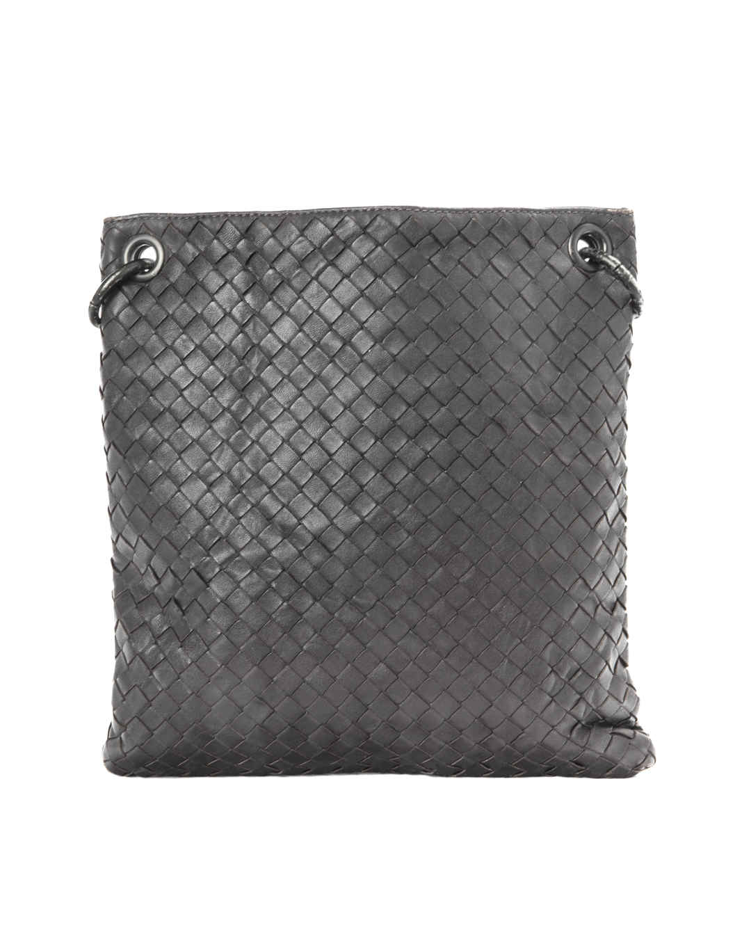 Borsa firmata Bottega Veneta, misura small, realizzata in pelle intrecciata viola con hardware argento. Non è dotata di nessuna chiusura, internamente rivestita in tela grigia con comoda tasca, la borsa è abbastanza capiente. Munita di una tracolla regolabile e rimovibile in tessuto, per una comoda portata a spalla o a tracolla. L'articolo si presenta in buone condizioni, con segni di usura visibili in foto.