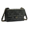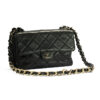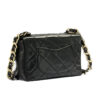 Borsa firmata Chanel, linea Timeless, realizzata in pelle nera con inserti bianchi. Dotata di una patta con chiusura a girello e classico logo del brand bianco e nero, internamente rivestita in pelle liscia tono su tono con comoda tasca, la borsa è abbastanza capiente. Munita di una tracolla intrecciata in pelle e catena bianca e nero, per una comoda portata a spalla o a tracolla. Presenta una comoda tasca aperta sul retro. Anno di produzione 2000/2002. L’articolo si presenta in ottime condizioni.