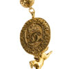 Collana firmata Chanel, linea Vintage, realizzata in metallo dorato con preziose rifiniture in oro. Il design è impreziosito da un pendente scenografico che unisce il classico logo della Maison a un delizioso cavallo decorativo, per un mix unico di eleganza e originalità. Il pendente misura 60 mm x 29 mm. La collana è dotata di una chiusura a gancio, pratica e versatile, che consente anche di indossarla come cintura gioiello per un look audace e sofisticato. L’articolo si presenta in ottime condizioni.