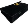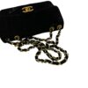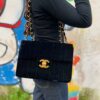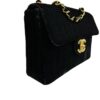 Borsa firmata Chanel, modello Jumbo Big Logo, realizzata in velluto nero con hardware dorati. Dotata di una patta con chiusura a girello e logo CC, internamente rivestita in pelle liscia nera, abbastanza capiente. Munita di una tracolla a scorrimento in pelle e catena, per indossare la borsa a spalla e a tracolla. Presenta tasche interne: una aperta e una richiudibile da una zip. Anno di produzione ’94-’96. si presenta in buone condizioni.