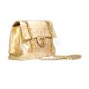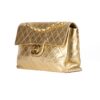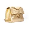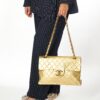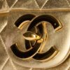 Borsa firmata Chanel, modello Maxi Jumbo, linea vintage Big Logo, realizzata in pelle liscia trapuntata color oro con hardware dorati. Dotata di una patta con chiusura a girello con logo CC, internamente rivestita in pelle nera, molto capiente. Munita di una tracolla in pelle e catena intrecciata per indossare la borsa sia a spalla che a tracolla. Anno di produzione 1989/91, munita di card originale, si presenta in buone condizioni.