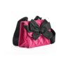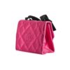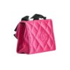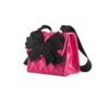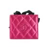 Borsa firmata Chanel, modello Flap, misura mini, realizzata in raso nella colorazione fucsia e nera con hardware dorati. Dotata di una patta frontale con chiusura a bottone calamitato, internamente rivestita in pelle nera, capiente per l’essenziale. Munita di una tracolla in raso nera non regolabile, per indossare la borsa a spalla o a tracolla. Presenta un fiocco nero sulla parte frontale, completa di card, Anno di produzione 2014/2015. L’articolo si presenta in buone condizioni con segni di usura visibili in foto.