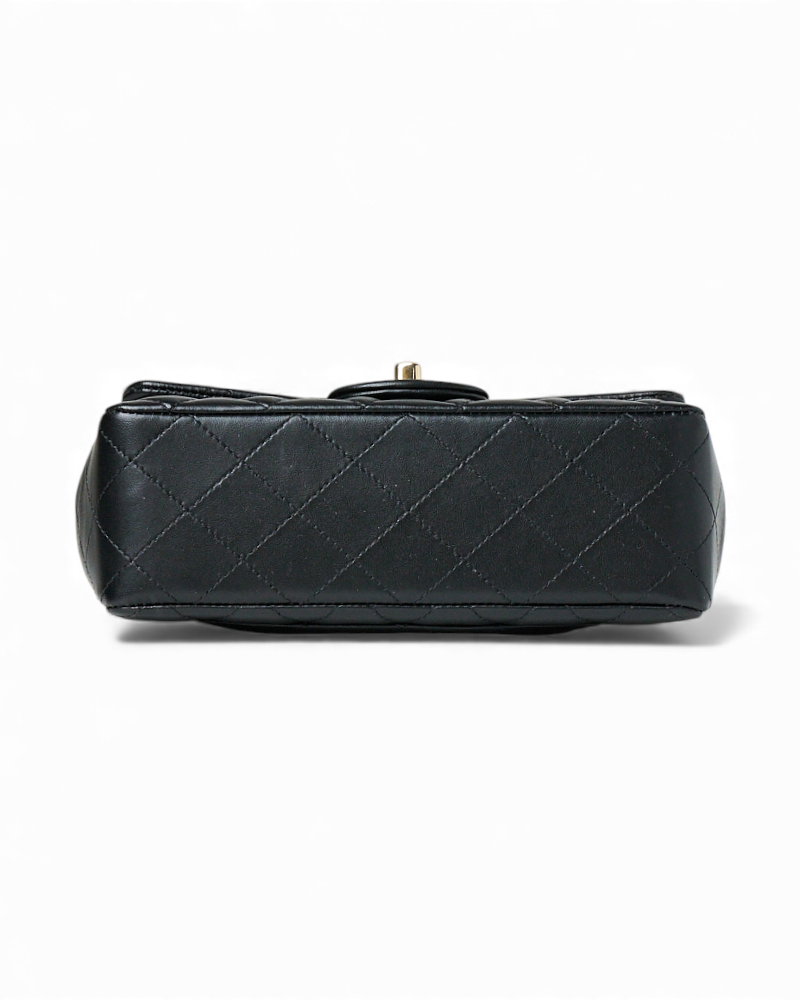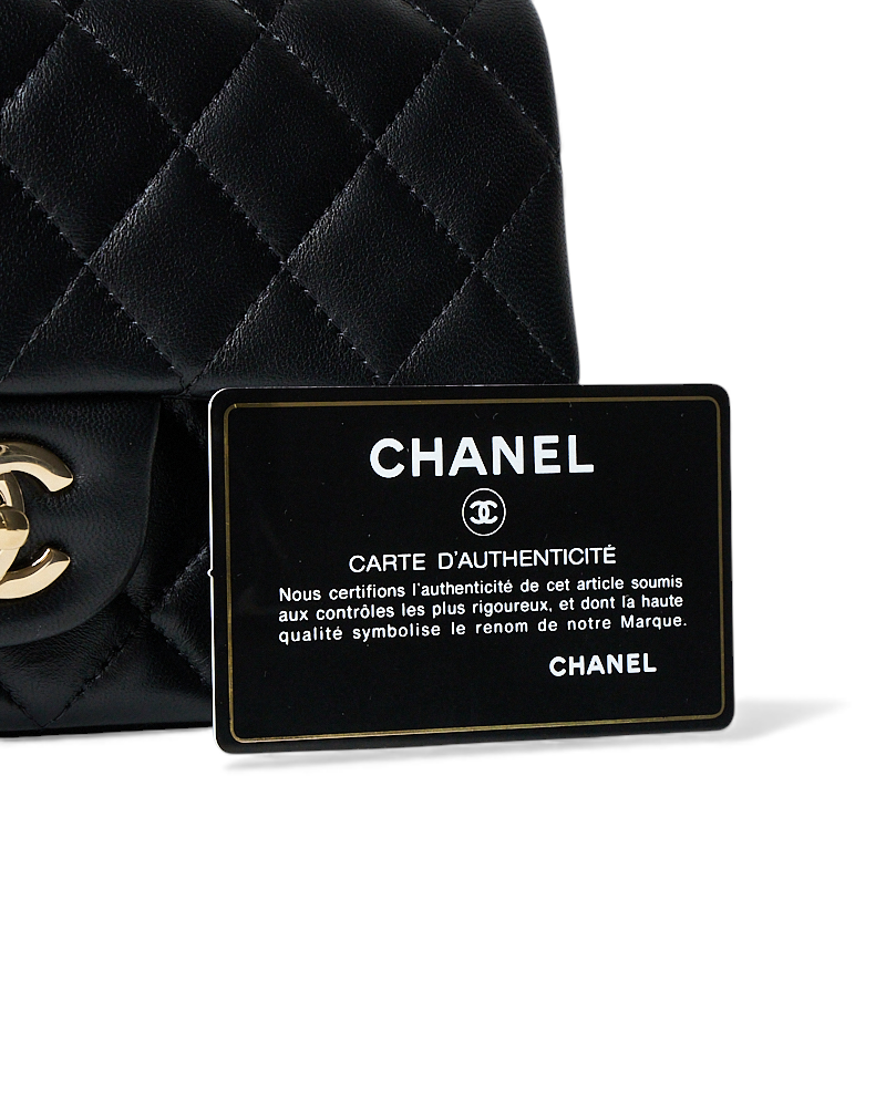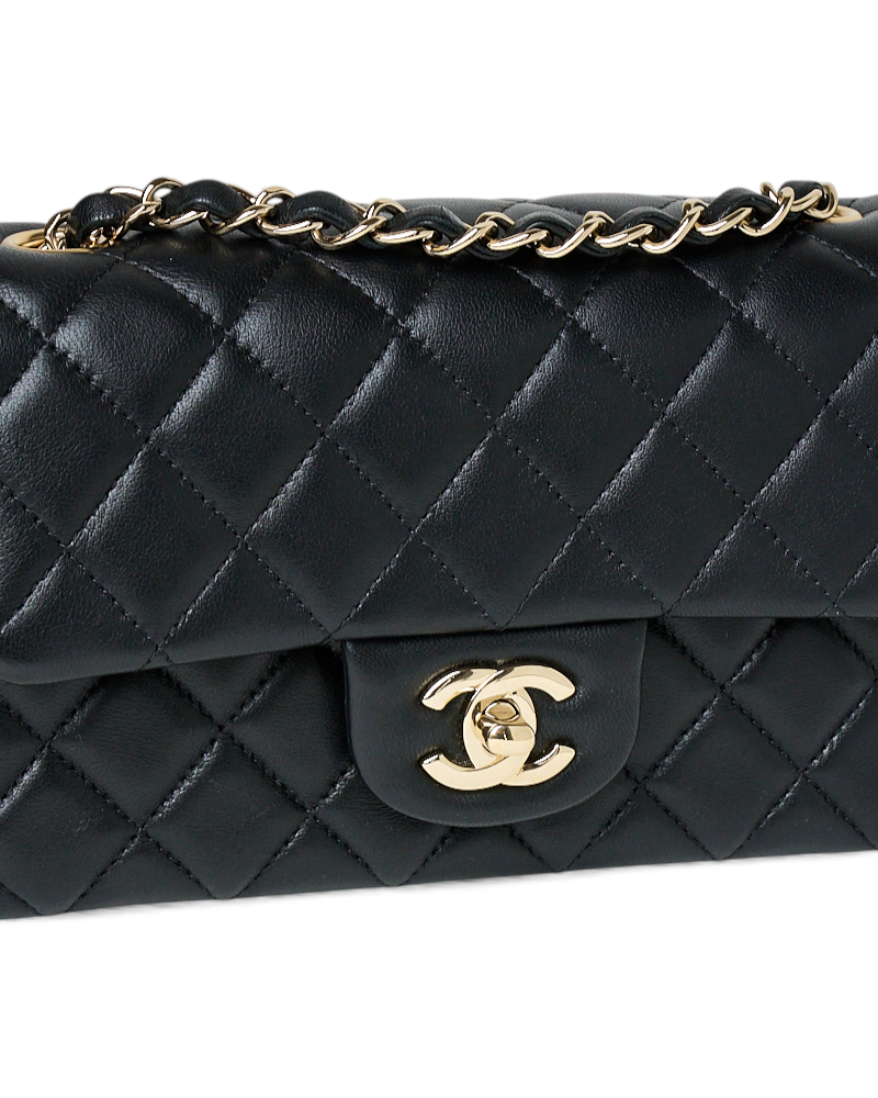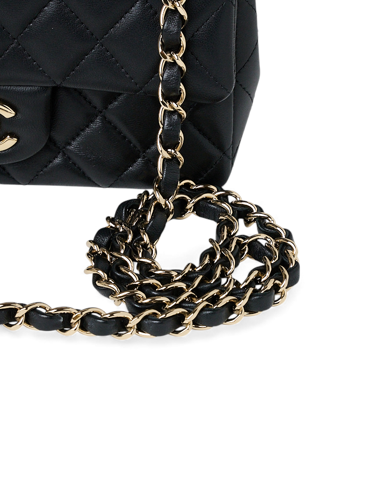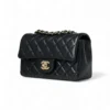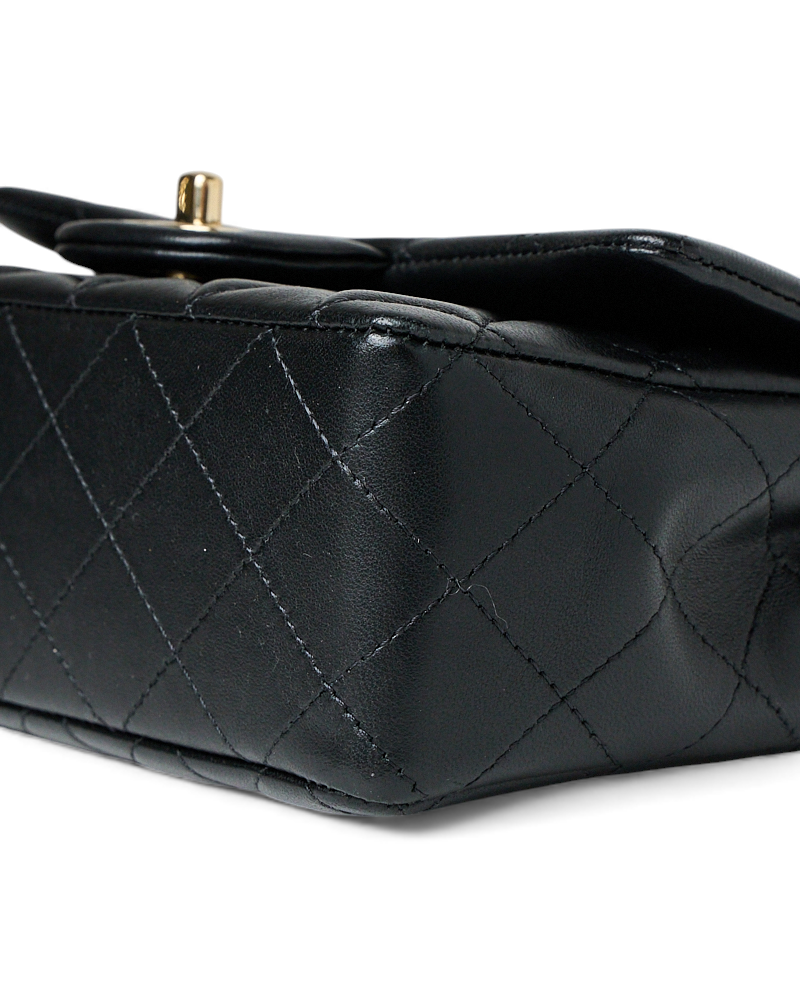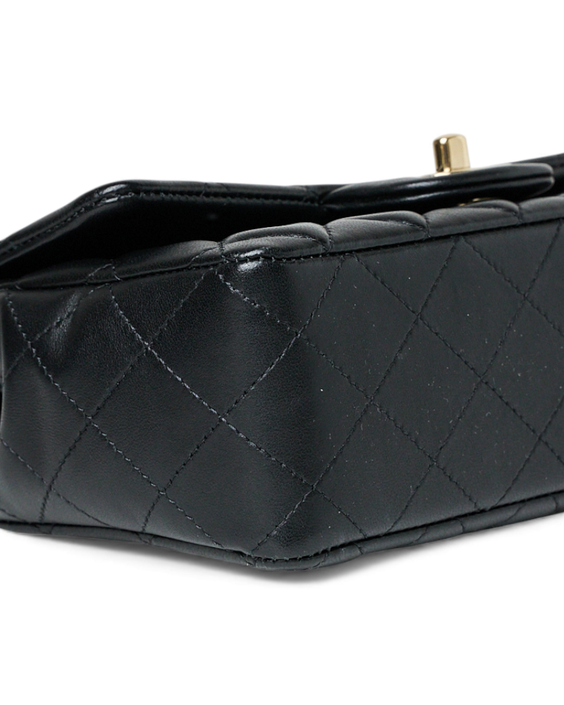 Borsa firmata Chanel, linea Timeless, modello Mini Flap Rectangular, realizzata in pelle trapuntata nera con hardware dorato. Dotata di una patta frontale con classico logo del brand “CC” in metallo e chiusura a girello. Internamente rivestita in pelle liscia tono su tono con comode tasche, la borsa è capiente. Munita di una tracolla in pelle e catena intrecciata, per una comoda portata a spalla o a tracolla. Completa di card, Anno di produzione 2020/2021. L’articolo si presenta in condizioni pari al nuovo.