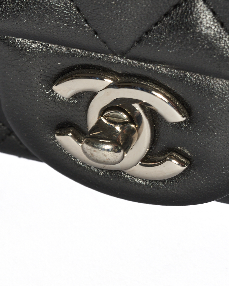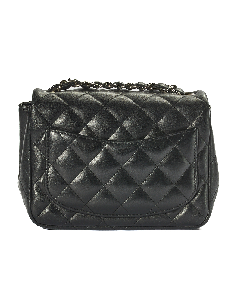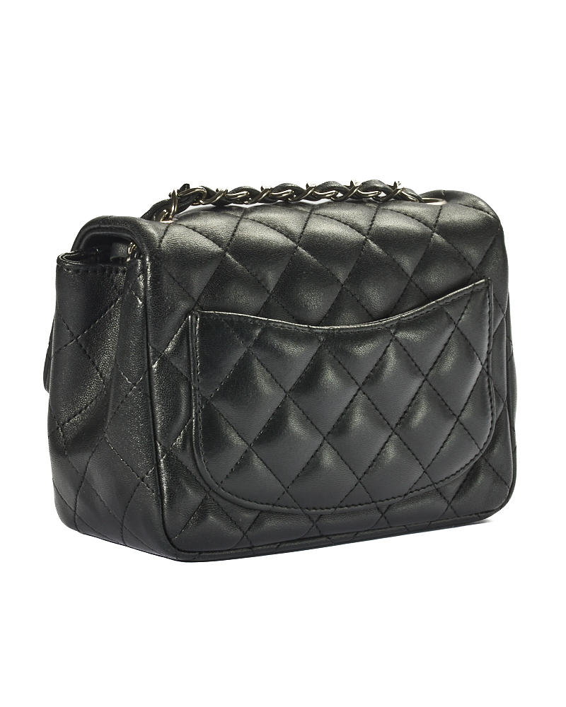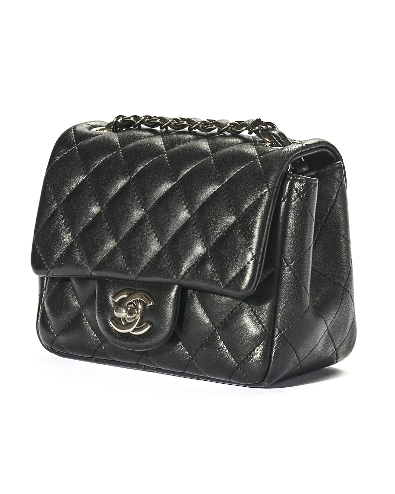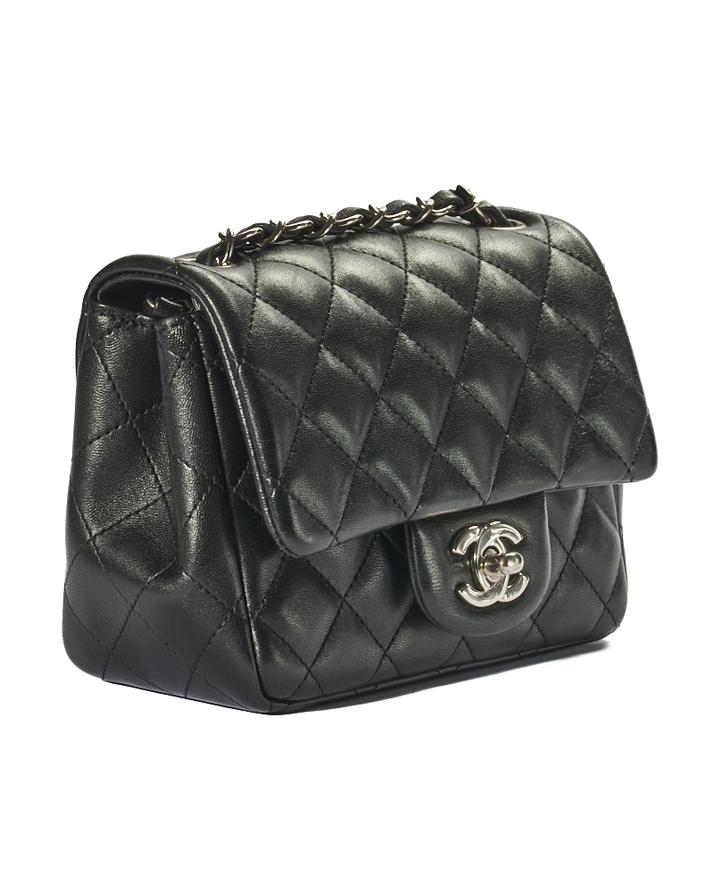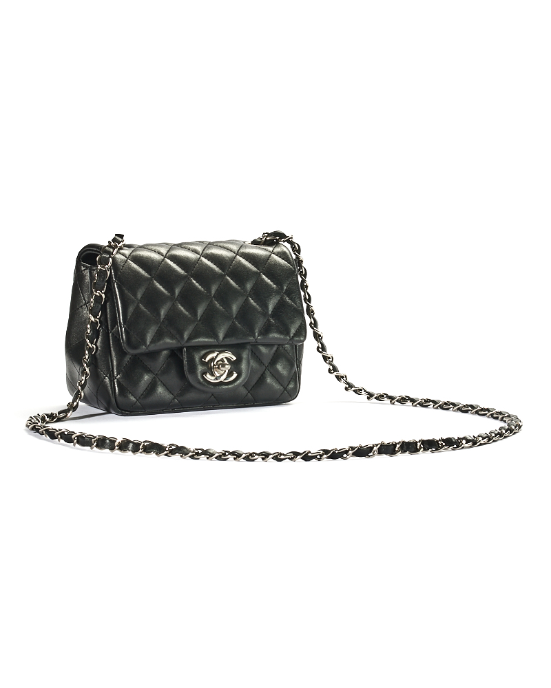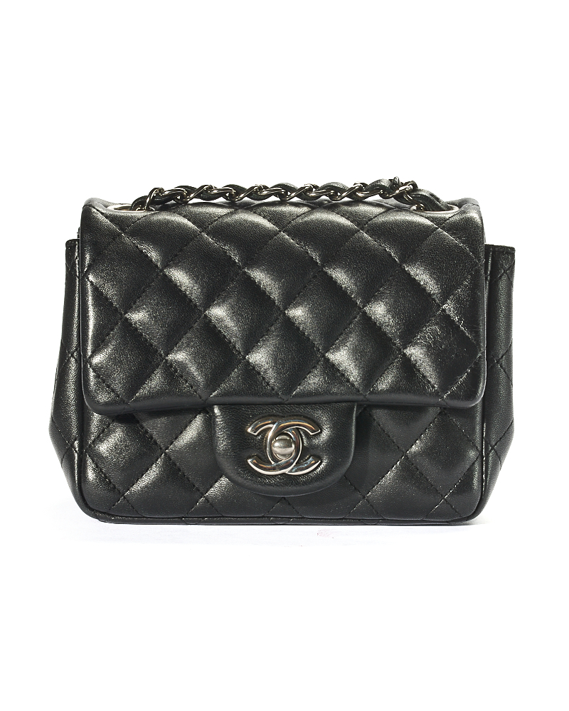 Borsa firmata Chanel, linea Timeless, modello Mini Flap Square, realizzata in pelle trapuntata in pelle nera con hardware argento. Dotata di una patta con classico logo del brand “CC” e chiusura a girello, internamente rivestita in pelle liscia con comode tasche, la borsa è capiente per l’essenziale. Munita di una tracolla in pelle e catena intrecciata, per una comoda portata a spalla o a tracolla. Anno di produzione 2019. L’articolo si presenta in ottime condizioni.