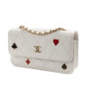Borsa firmata Chanel, in edizione limitata, modello Phone Holder nella misura Mini, realizzata in pelle caviar bianca arricchita da patch a tema casino poker con hardware dorato. Dotata di una patta con chiusura calamitata, internamente rivestita in pelle liscia tono su tono con comode tasche, la pochette è capiente per l’essenziale. Munita di una tracolla regolabile in pelle e catena intrecciata, per una comoda portata a spalla o a mano come pochette. Completa di chip interno. L’articolo si presenta in ottime condizioni.