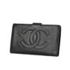 Portafoglio firmata Chanel, linea Vintage, realizzato in pelle caviar nero con hardware dorato. Dotato di una chiusura a clip, internamente rivestito in pelle liscia nera con molteplici tasche, la borsa è capiente. L’articolo si presenta in buone condizioni.