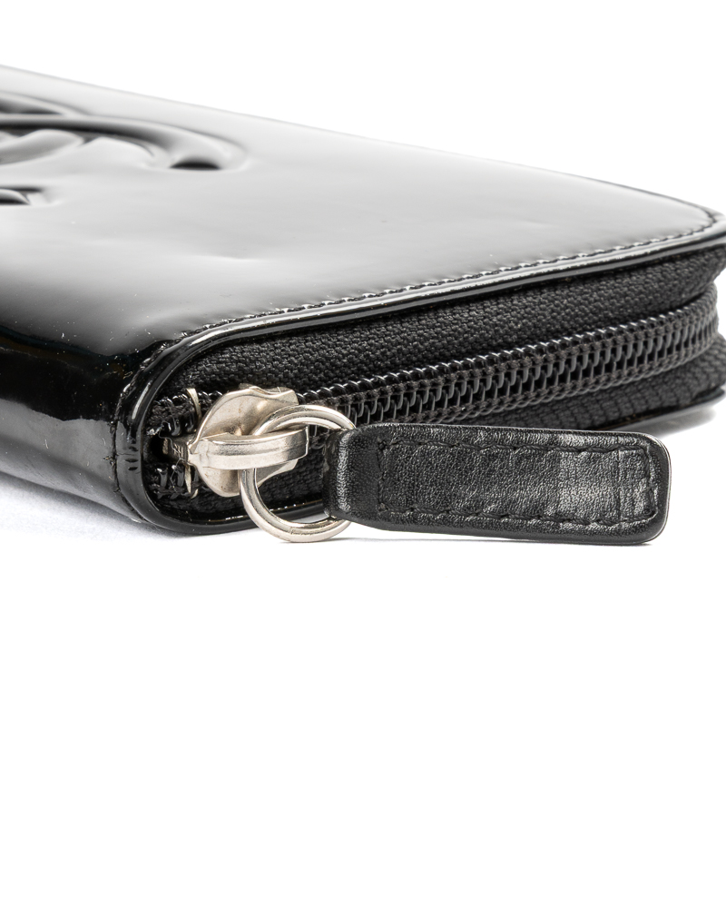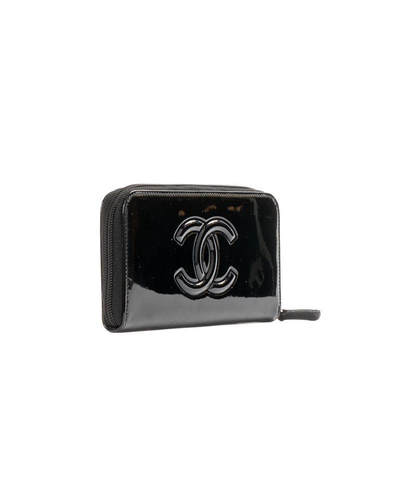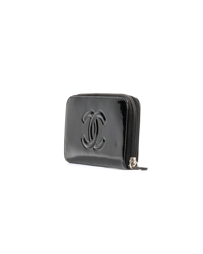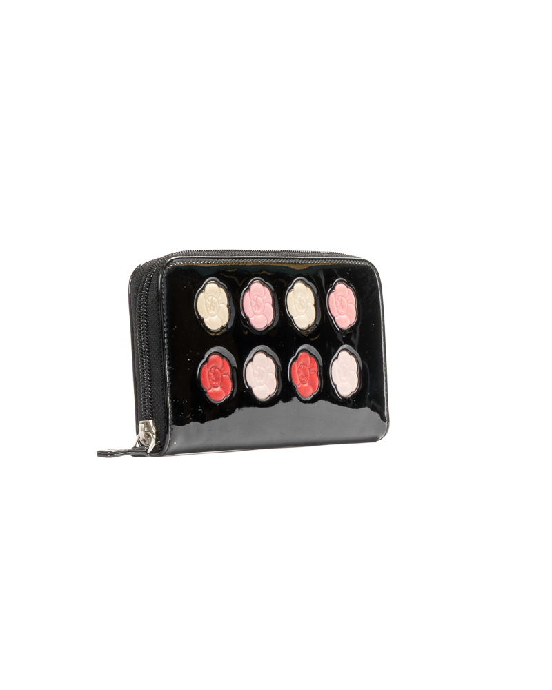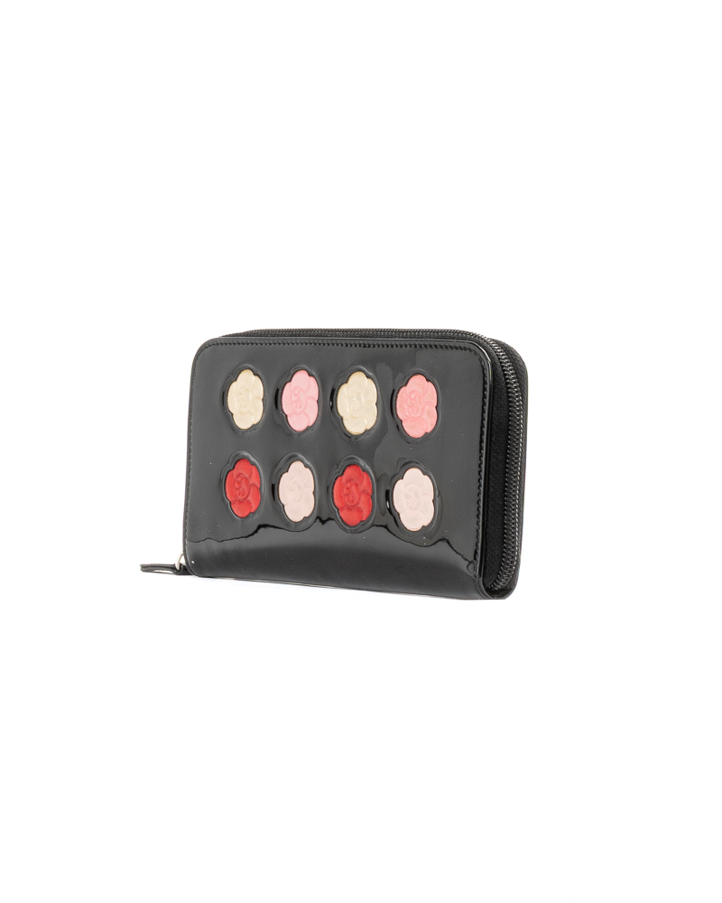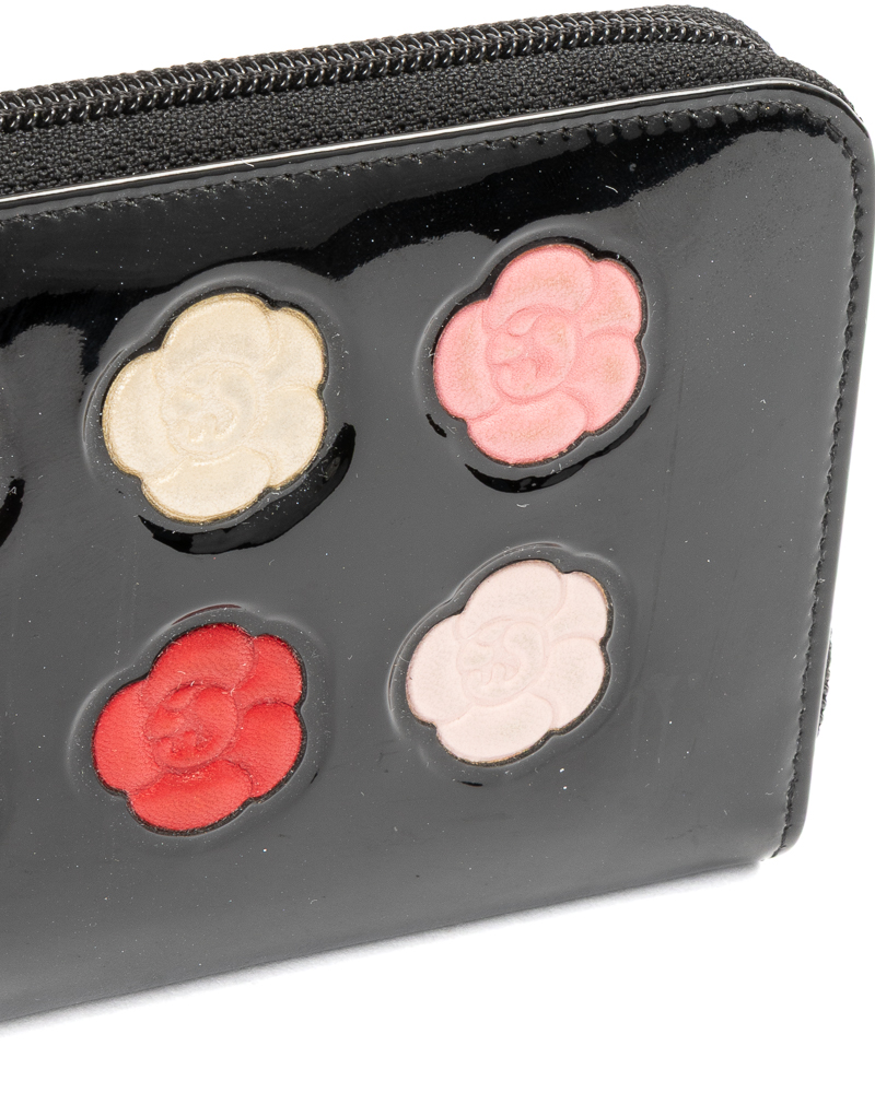 Chanel Portafoglio Zip Camelie Vernice Nero