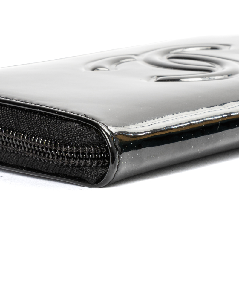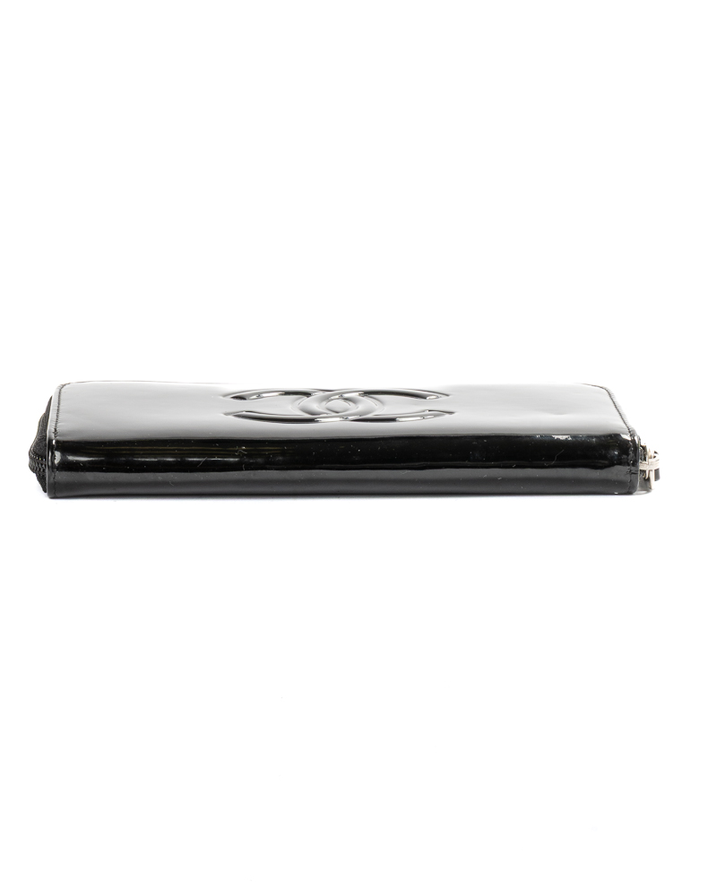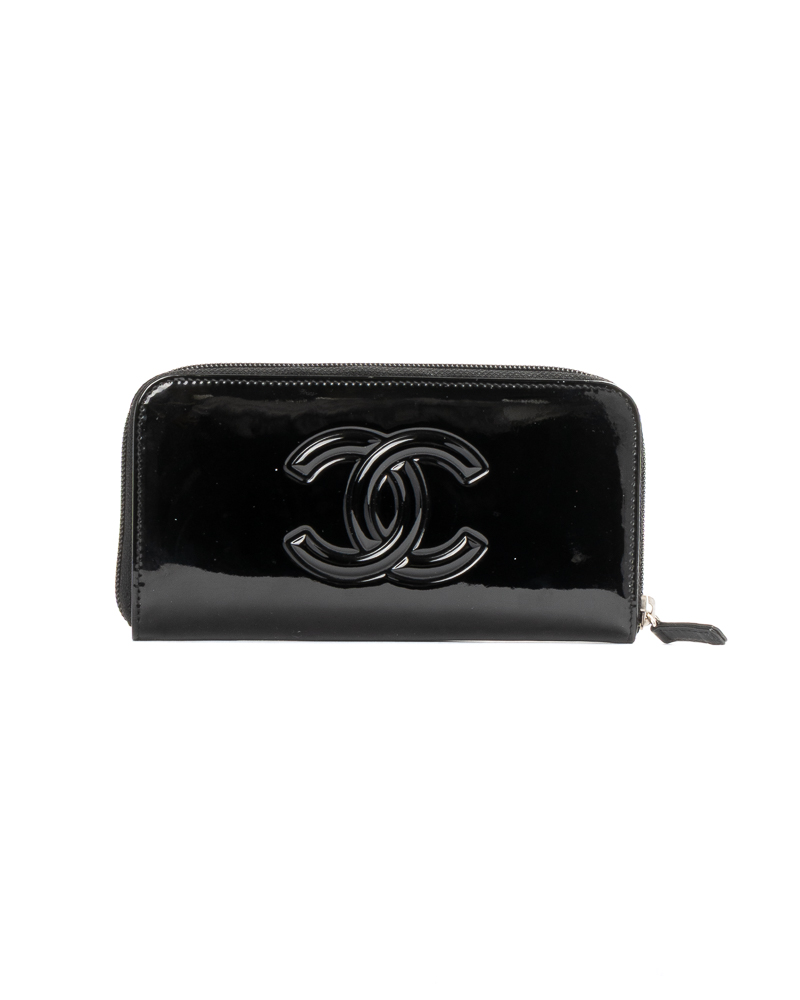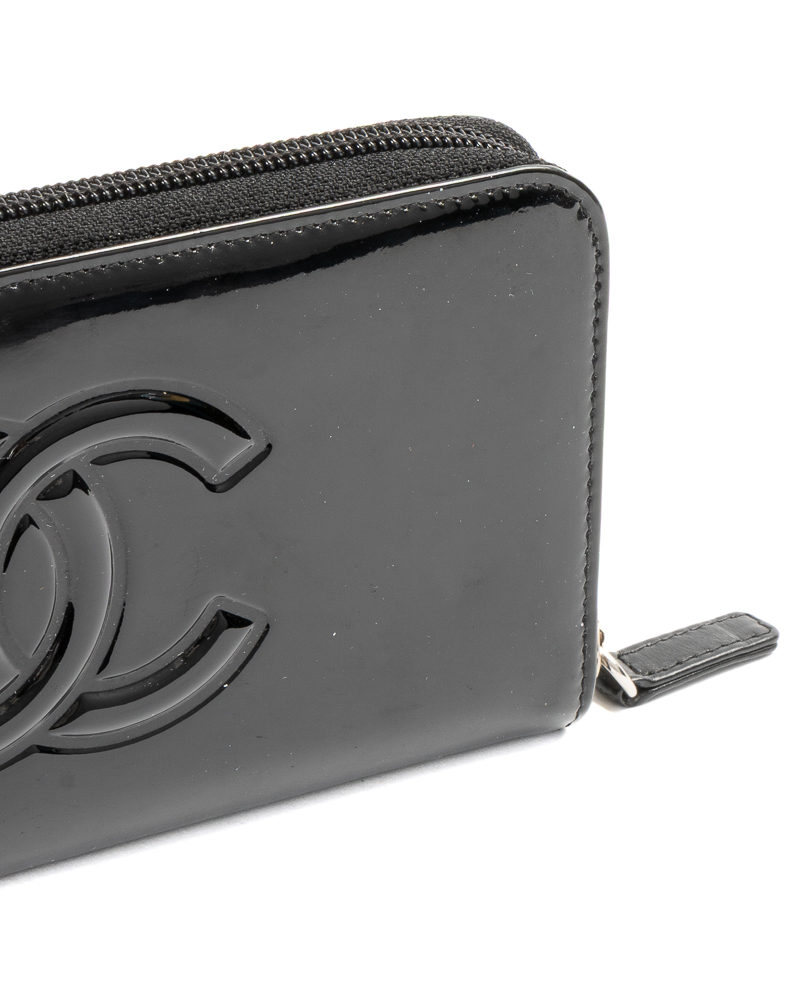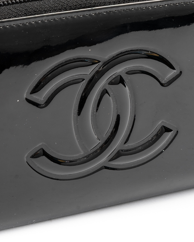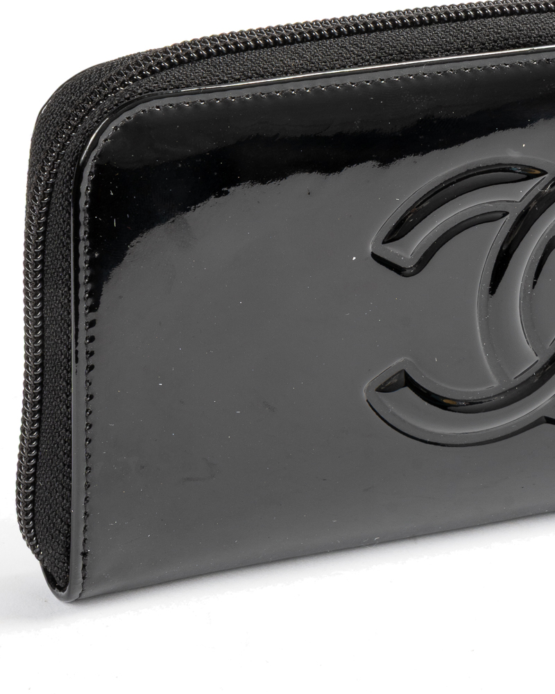 Chanel Portafoglio Zip Camelie Vernice Nero