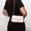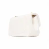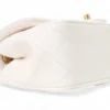 Borsa firmata Chanel, linea timeless, modello Rectangular Flap nella misura small, realizzata in pelle bianca con hardware dorato. Dotata di una patta frontale con classico logo del brand “CC” in metallo e chiusura a girello, internamente rivestita in pelle liscia oro con due comode tasche, la borsa è capiente per l’essenziale. Munita di una tracolla regolabile tramite una camelia, per una comoda portata a spalla o a tracolla. Completa di Chip. L’articolo si presenta in ottime condizioni.