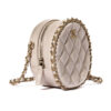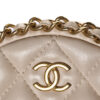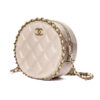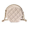 Borsa firmata Chanel, modello Round, realizzata in pelle trapuntata beige con hardware dorati. Dotata di una chiusura semicircolare a zip, internamente rivestita in tela tono su tono, la borsa è capiente per l’essenziale. Munita di una tracolla in pelle e catena intrecciata, per una comoda portata a spalla o a tracolla. Sulla parte frontale presenta il classico logo del brand “CC” e un’applicazione di pelle e catena. Anno di produzione 2020. L’articolo si presenta in buone condizioni.