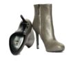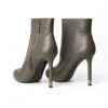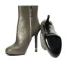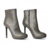 Stivaletti firmati Chanel, realizzati in pelle liscia nella colorazione grigia con hardware argentati. Presenta sulla parte laterale interna una chiusura a zip, internamente rivestiti in pelle beige. Misura 37 e mezzo. Altezza tacco 11 centimetri. Si presentano in ottime condizioni.