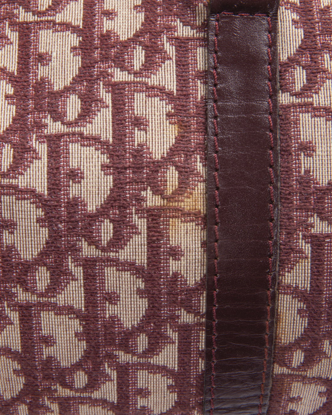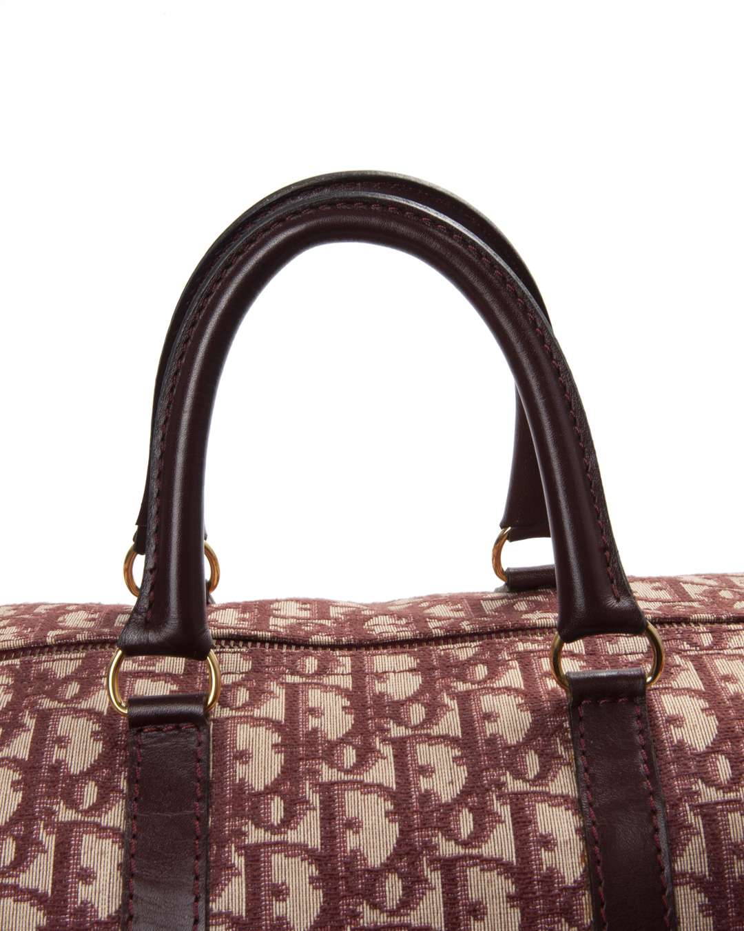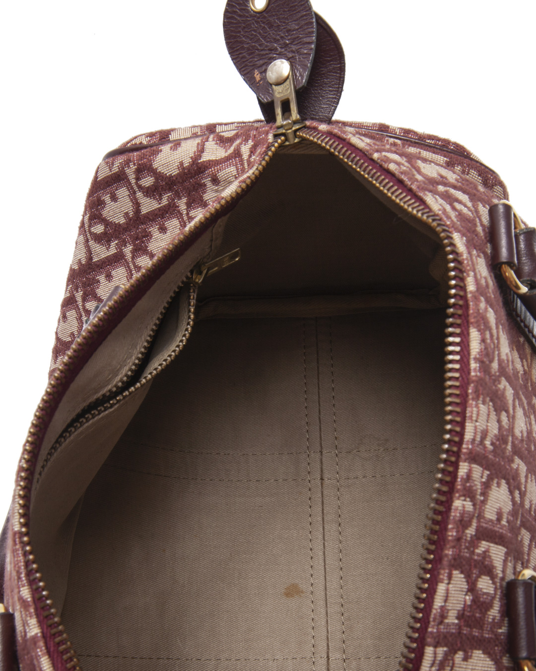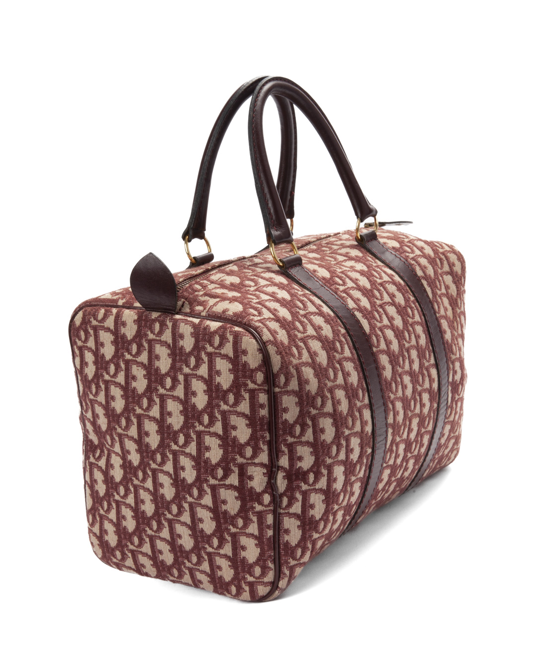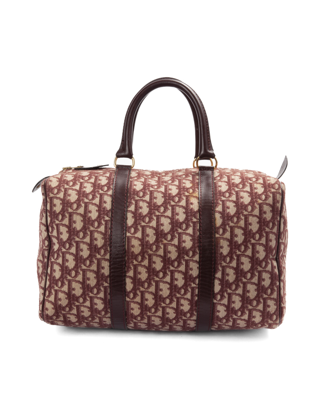 Borsa firmata Dior, Linea Vintage, modello Boston nella misura medium, realizzata in tela nella classica fantasia Oblique con rifiniture in pelle e hardware argento. Dotata di una chiusura superiore a zip, internamente rivestita in tela beige con comoda tasca, la borsa è abbastanza capiente. Munita di doppio manico in pelle, per una comoda portata a mano. L’articolo si presenta in buone condizioni, con segni di usura visibili in foto.
