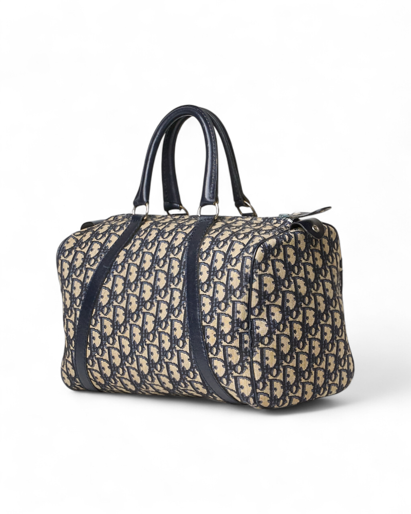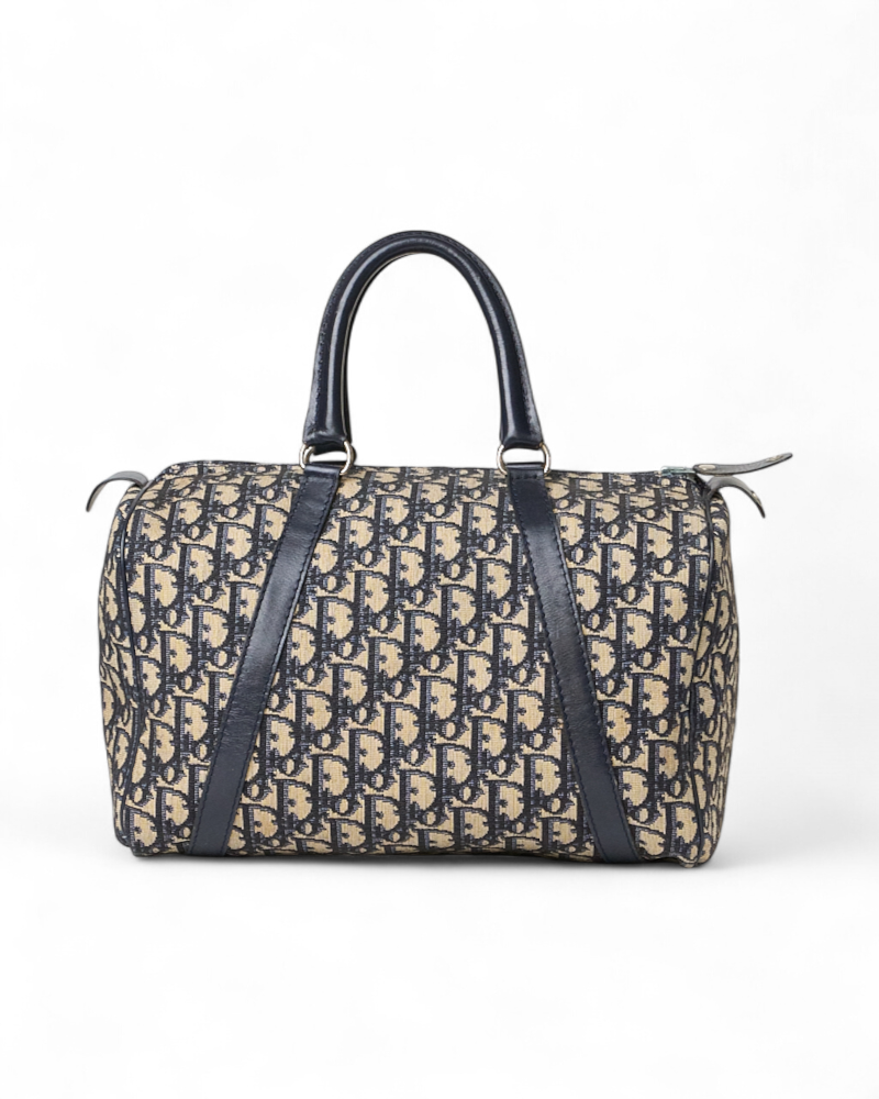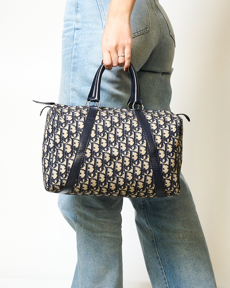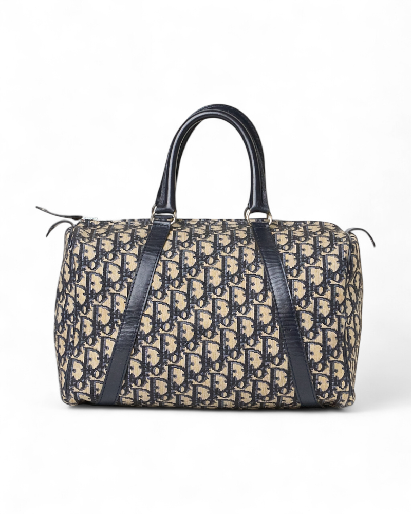 Borsa firmata Dior, linea Vintage, modello Bowling nella misura medium, realizzato in tela nella fantasia Oblique con inserti in pelle e hardware argento. Dotato di una chiusura superiore a zip, internamente rivestito in pelle tono su tono con comoda tasca, la borsa è abbastanza capiente. Munito di doppio manico in pelle, per una comoda portata a mano. L’articolo si presenta in buone condizioni.