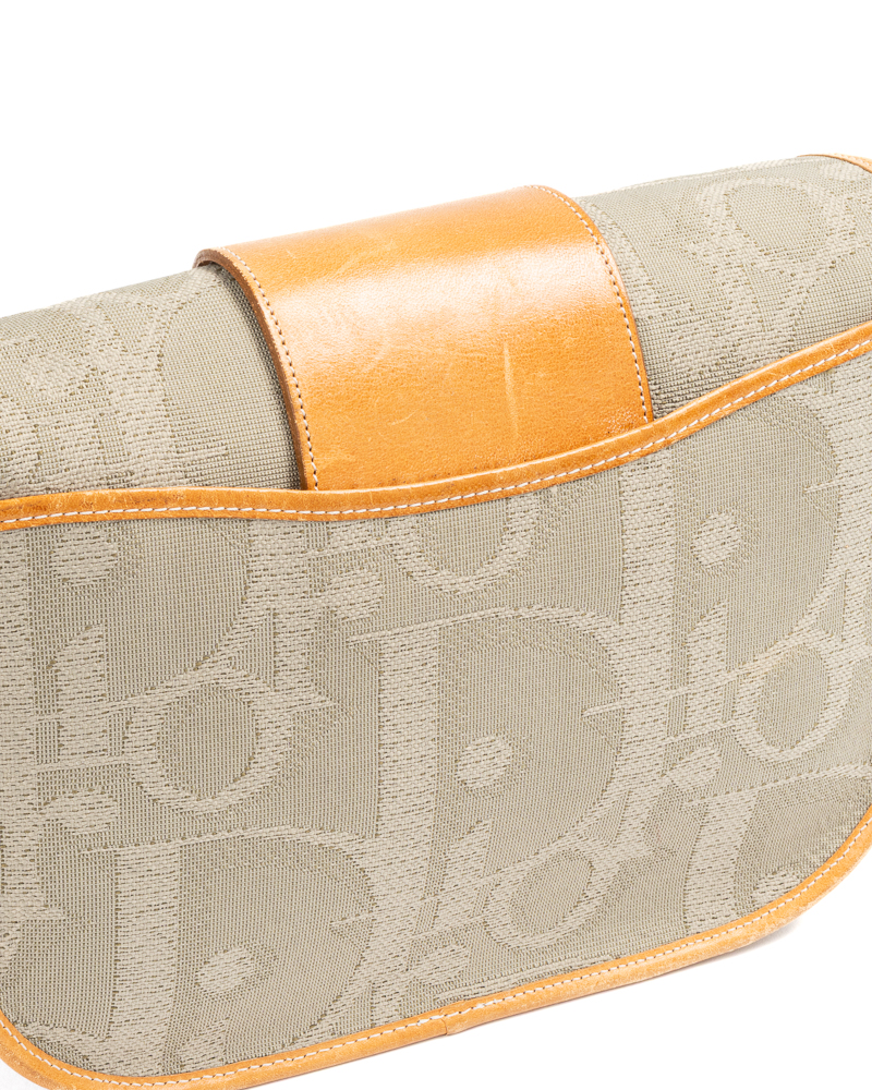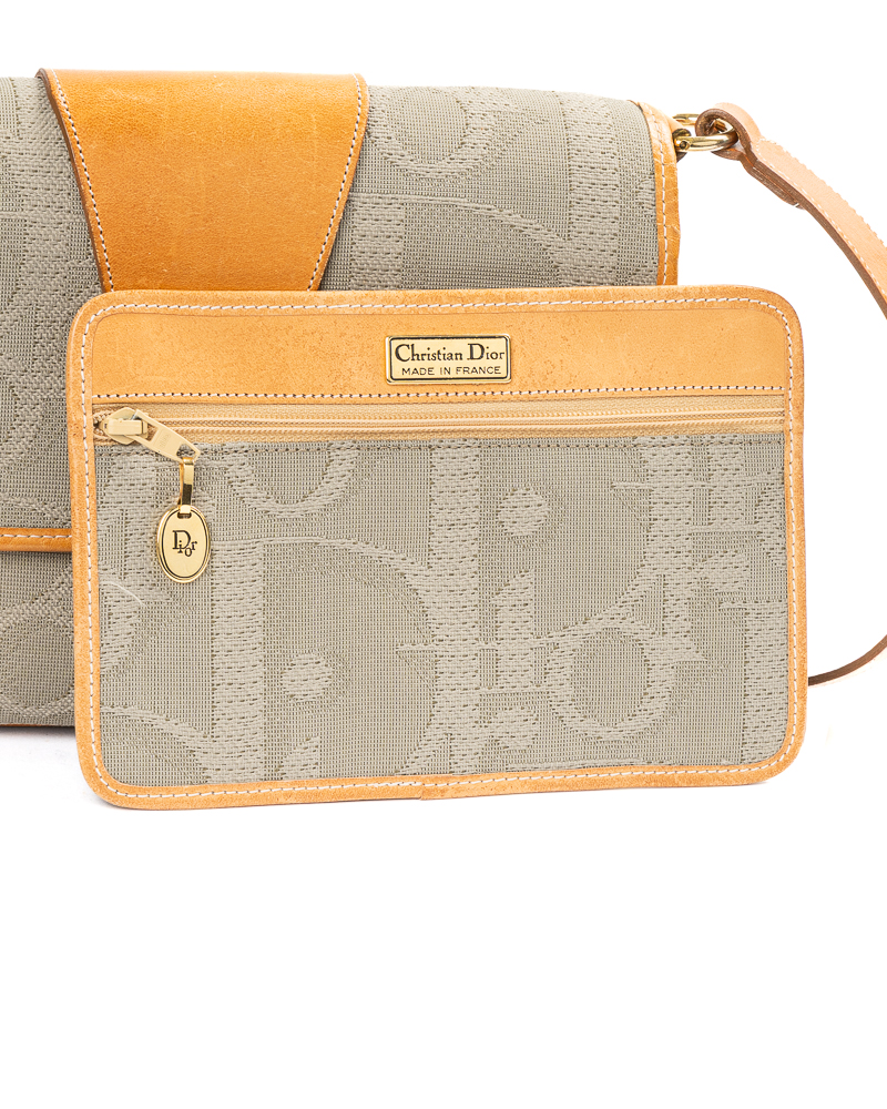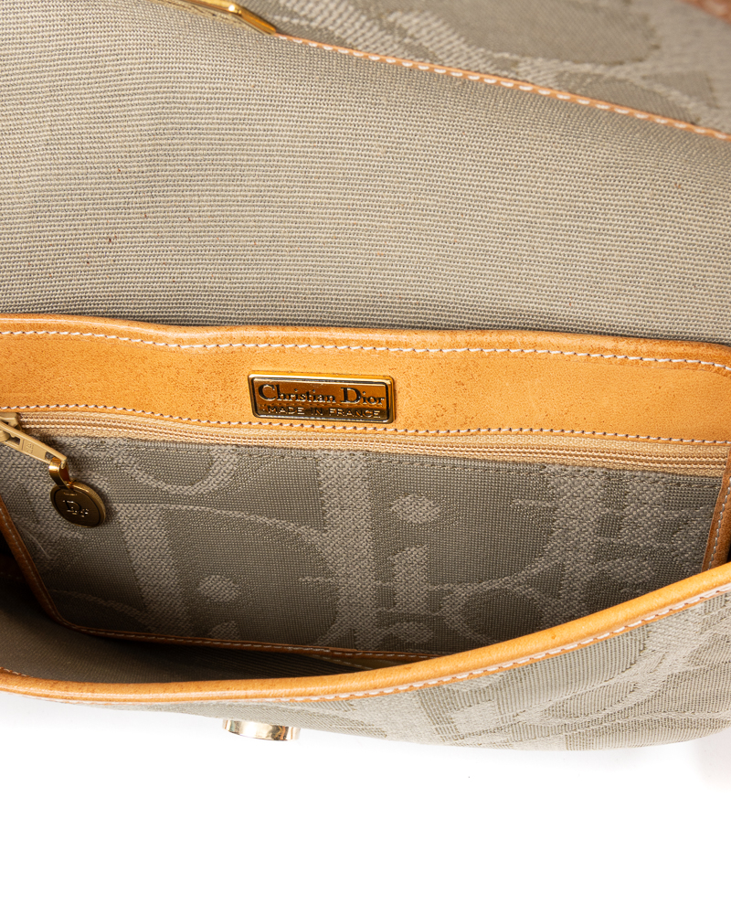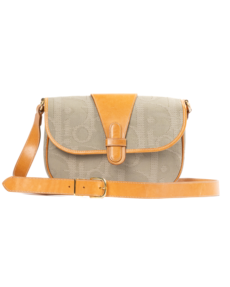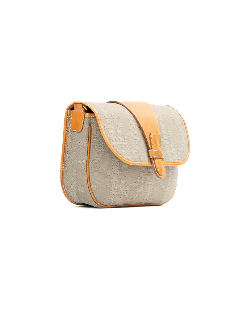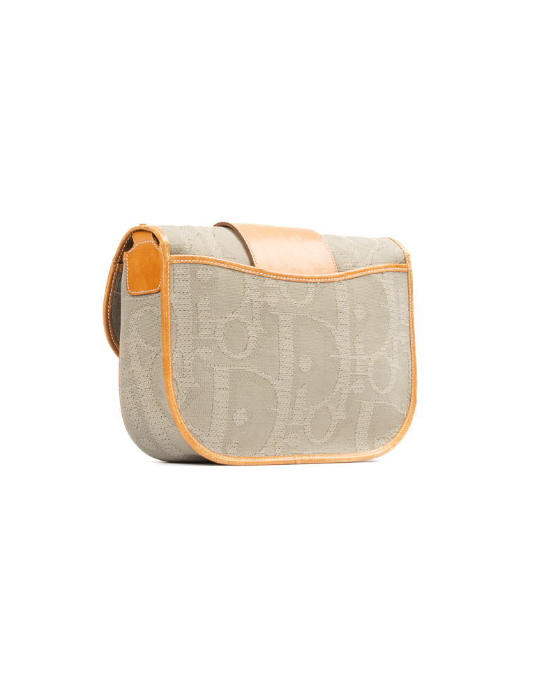 Borsa firmata Dior, linea Vintage, modello Camera Bag, realizzata in tela grigia con la fantasia Macro Oblique e hardware dorato. Dotata di una patta con chiusura calamitata, internamente rivestita in tela tono su tono, con tasca estraibile, la borsa è abbastanza capiente. Munita di una tracolla regolabile in pelle, per una comoda portata a spalla o a mano. L’articolo si presenta in buone condizioni, con segni di usura visibili in foto.
