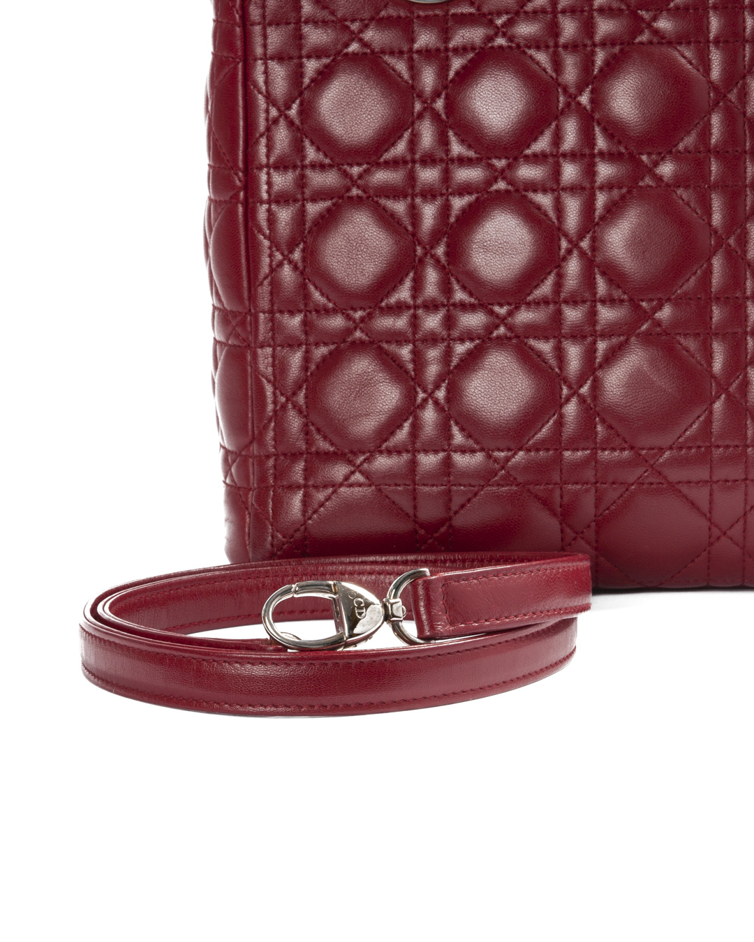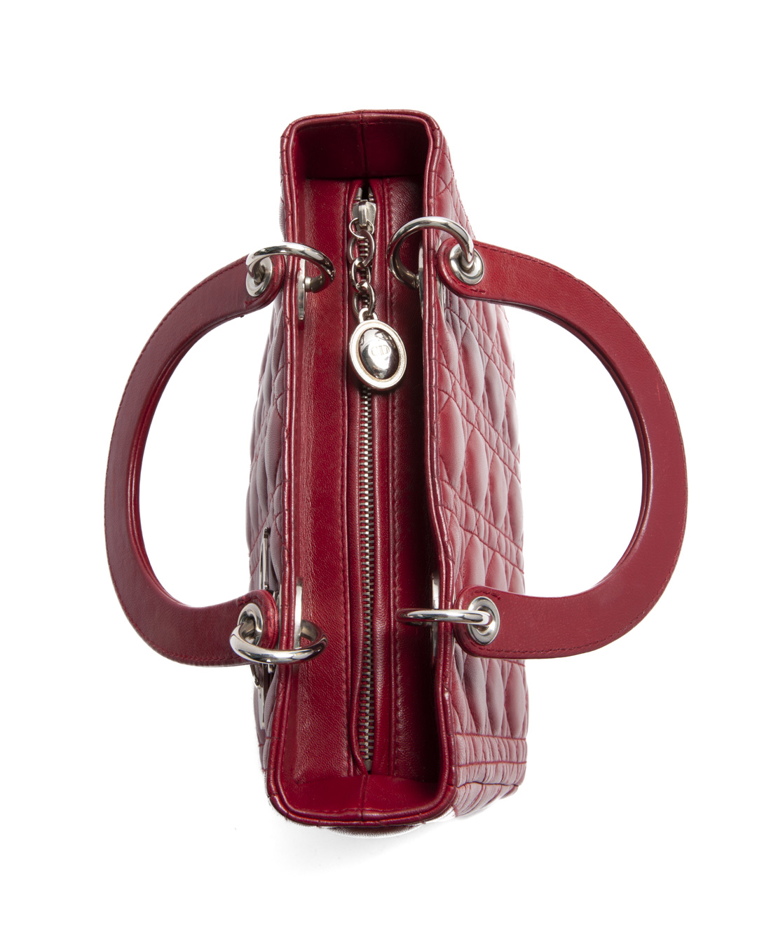 Borsa firmata Dior, modello Lady Vintage nella misura Medium, realizzata in pelle Cannage bordeuax con dettagli in hardware argento. Dotata di una chiusura con zip, l’interno è rivestito in tela rossa logata e offre una comoda tasca per una facile organizzazione. La borsa presenta un doppio manico in pelle e una tracolla rimovibile, permettendo di indossarla sia a mano che a spalla. Arricchita dai ciondoli “D.I.O.R.” in metallo argentato , che aggiungono un tocco distintivo. L’articolo si presenta in buone condizioni.