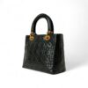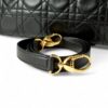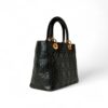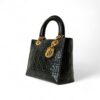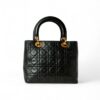 Borsa Dior Lady Vintage, modello medium, realizzata in pelle Cannage nera con dettagli in hardware dorato. Dotata di una chiusura con zip, l’interno è rivestito in tela rossa e offre una comoda tasca per una facile organizzazione. La borsa presenta un doppio manico in pelle e una tracolla rimovibile, permettendo di indossarla sia a mano che a spalla. Arricchita dai ciondoli “D.I.O.R.” in metallo dorato, che aggiungono un tocco distintivo. L’articolo si presenta in buone condizioni.