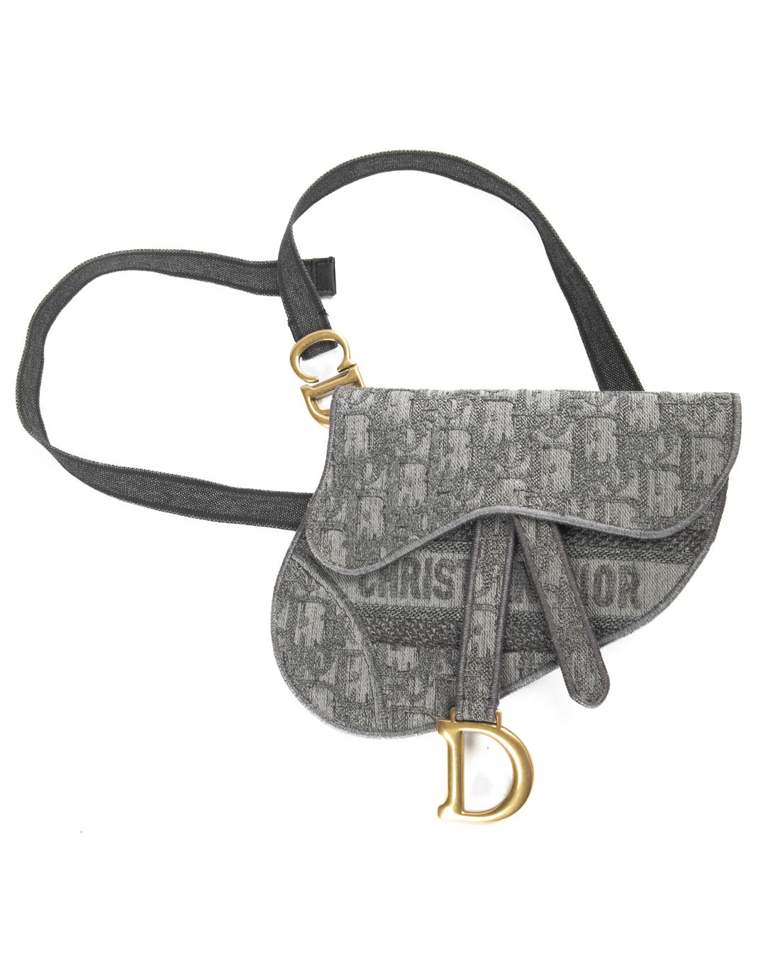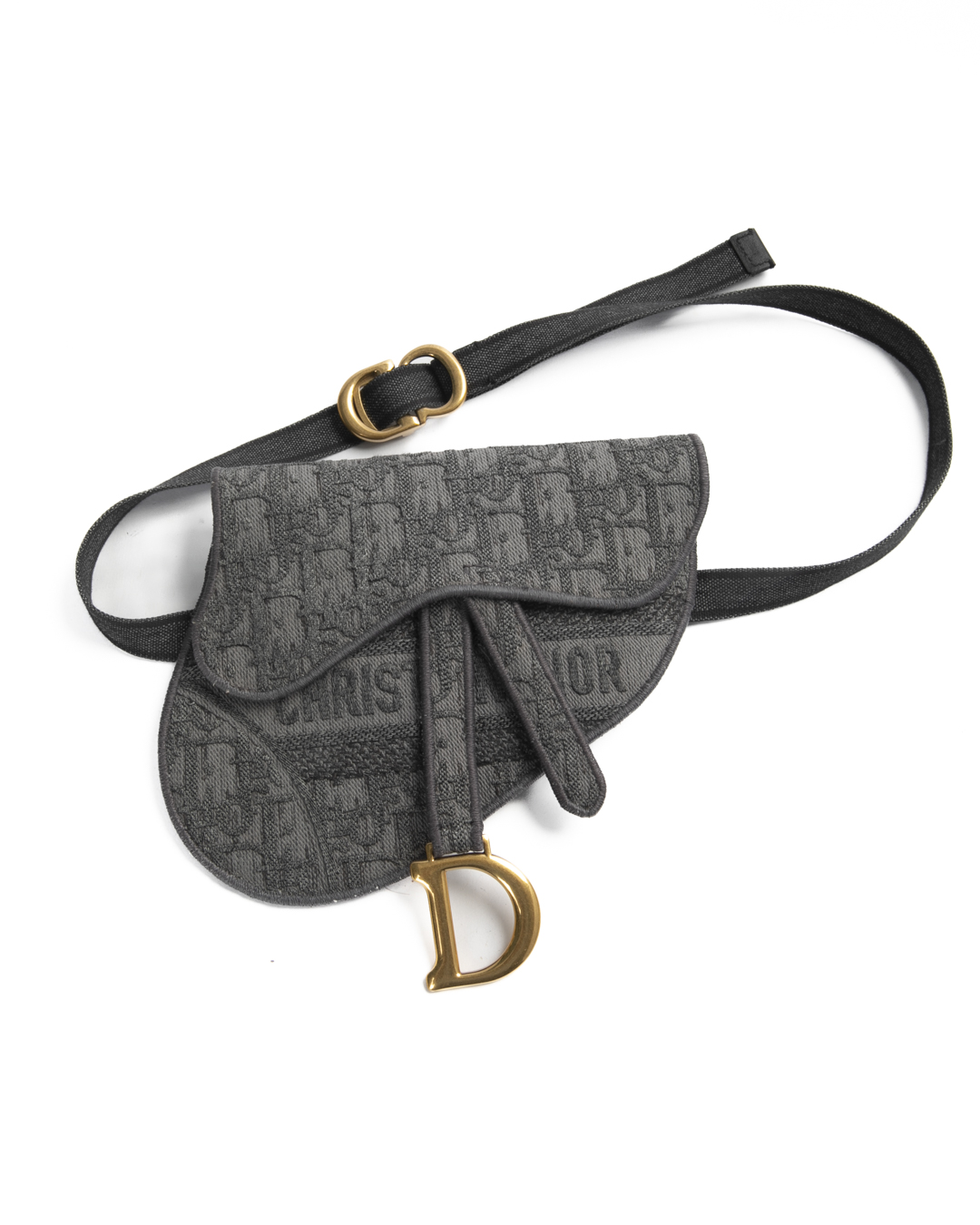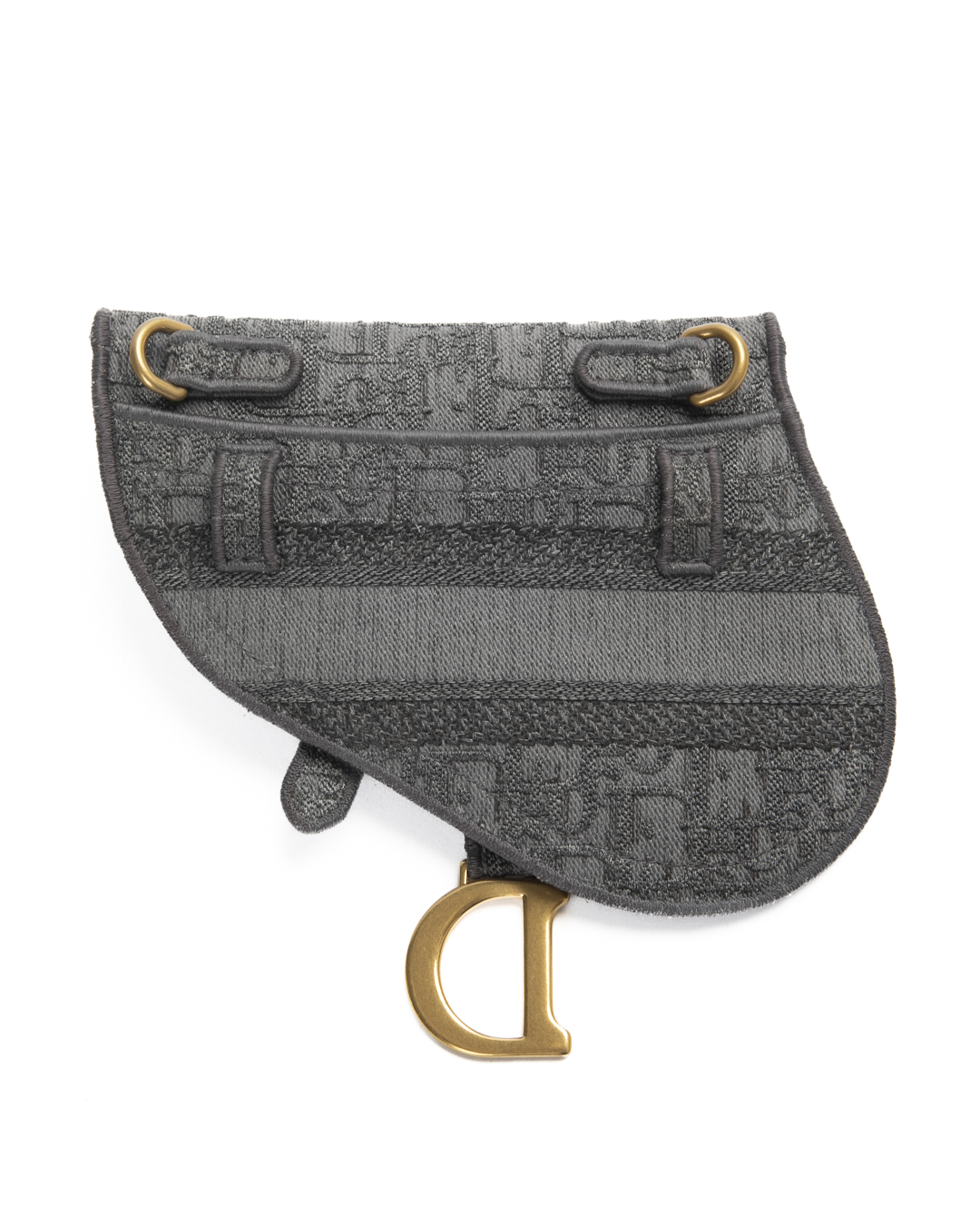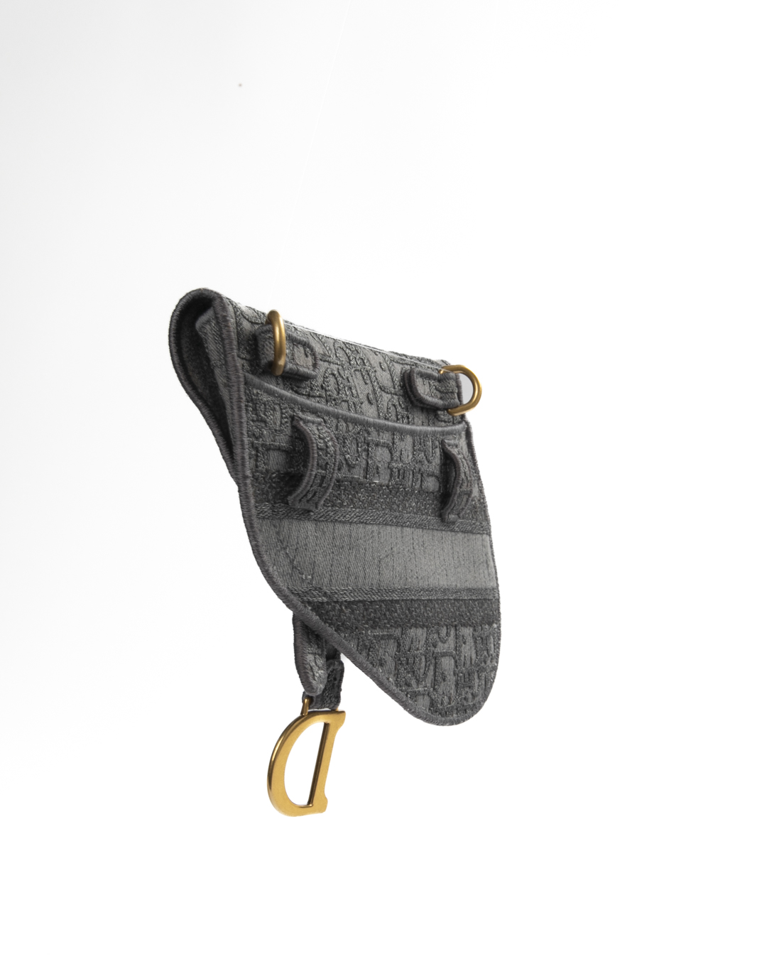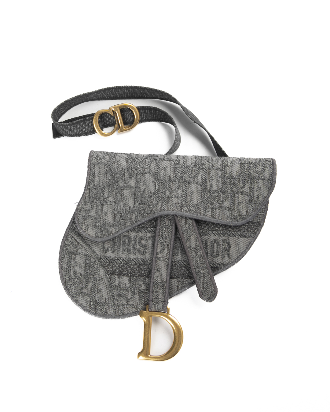 Marsupio firmato Dior, modello Saddle nella misura small, realizzato in tessuto grigio nella fantasia oblique con hardware dorato. La patta frontale è dotata di una fascetta con chiusura magnetica a forma di “D”, internamente rivestita in tela, la borsa è capiente per l'essenziale. Munita di una tracolla regolabile, per una comoda portata a spalla o a tracolla. L'articolo si presenta in condizioni pari al nuovo.