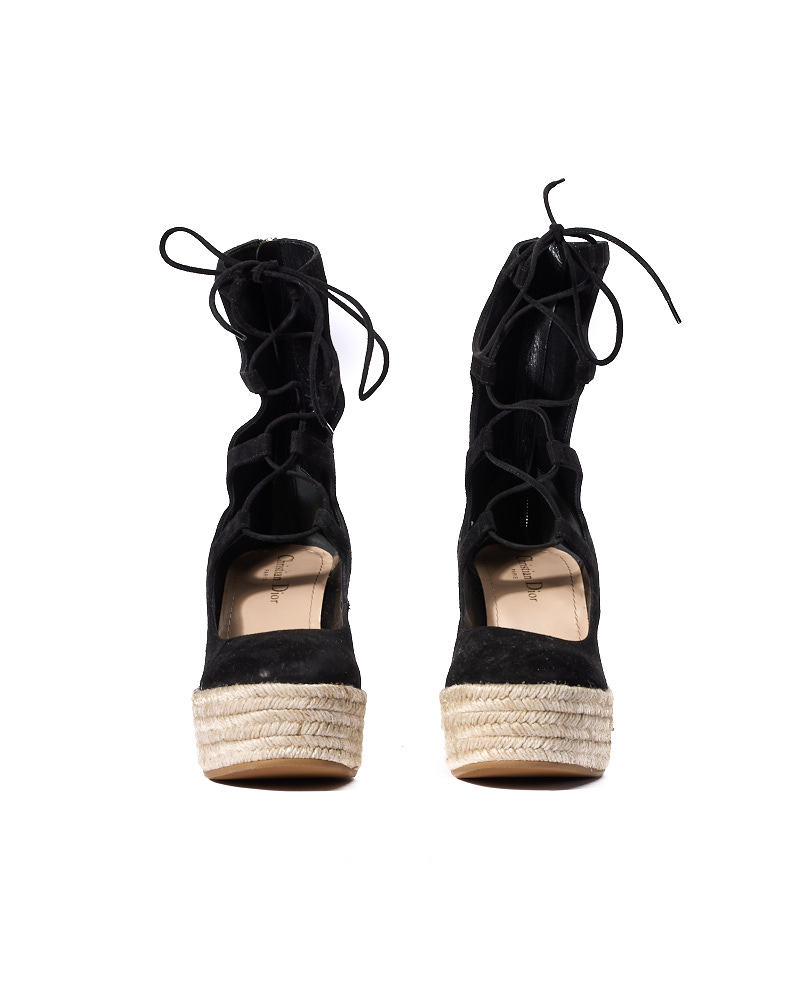 Dior Sandalo Espadrillas Rafia Camoscio Nero