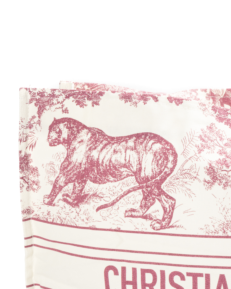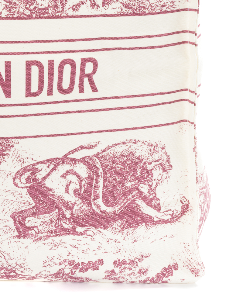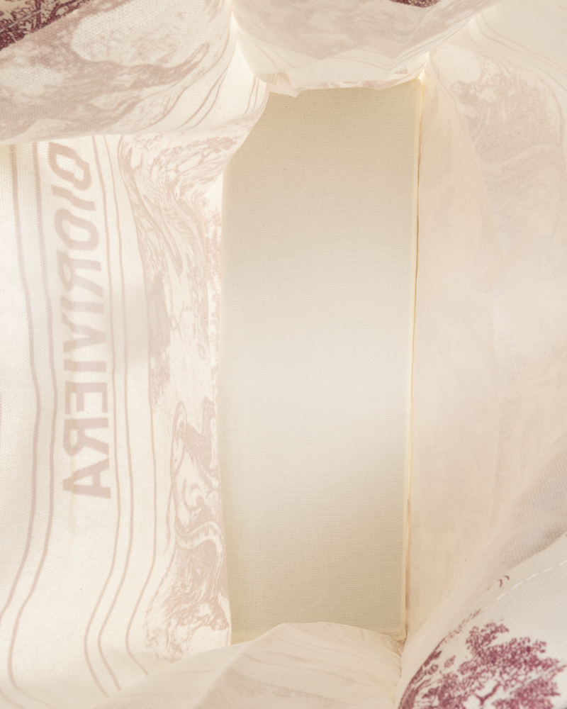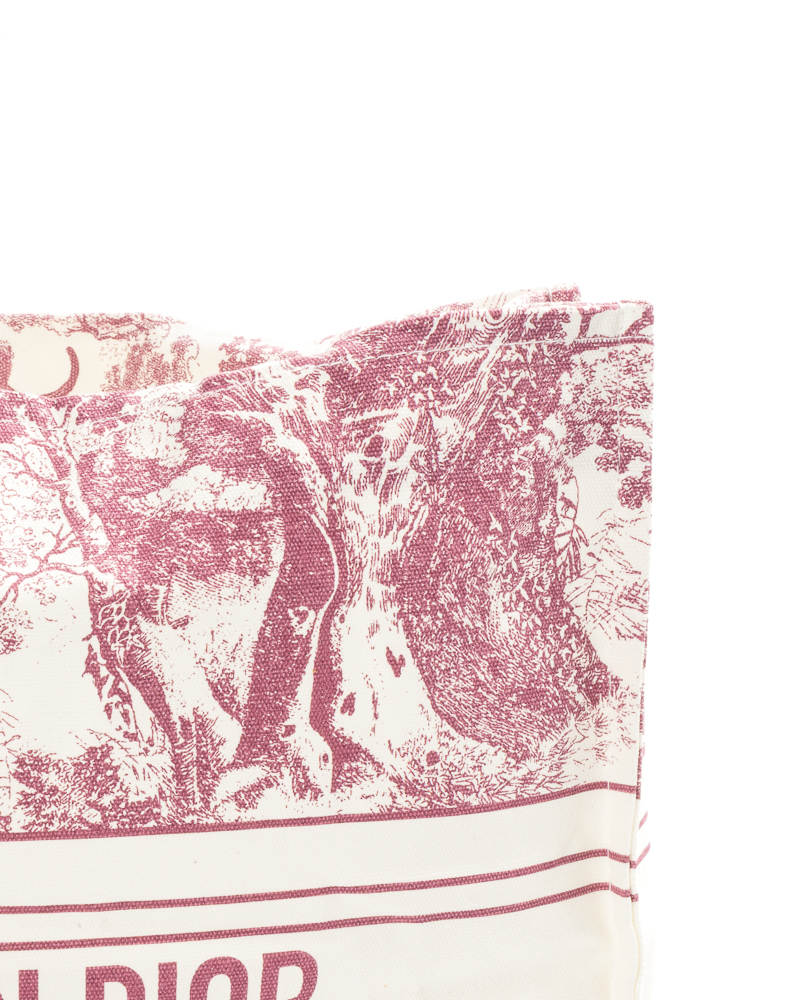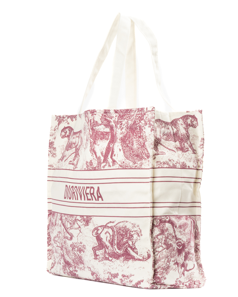 Borsa firmata Dior, modello tote, realizzato in cotone bianco e bordeaux nella fantasia Toile De Jouy nella colorazione bianco e bordeaux. Non è dotato di nessuna chiusura, internamente rivestito in tessuto bianco, la borsa è abbastanza capiente. Munito di doppio manico in cotone bianco, per una comoda portata a mano. L’articolo si presenta in condizioni pari al nuovo.
