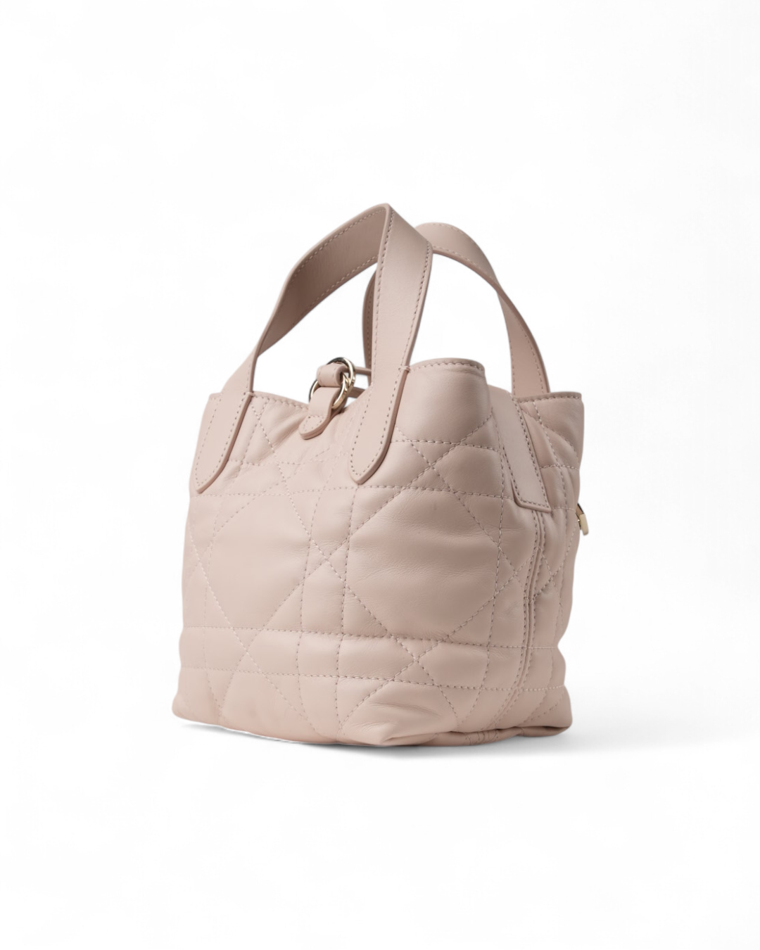 Borsa firmata Dior, modello Toujours vertical nano, realizzata in pelle con motivo Macrocanna nella colorazione rosa e hardware dorato. Dotata di una Chiusura doppia, cinturino sottile sul davanti e fascetta Christian Dior Paris ai lati con fermaglio CD Lock, internamente rivestita in pelle liscia con piccola tasca, la borsa è capiente per l’essenziale. Munita di doppio manico e di una tracolla rimovibile, per una comoda portata a mano o a spalla. Arricchita dal classico logo del brand “DIOR” sulla parte frontale. L’articolo si presenta in condizioni pari al nuovo.