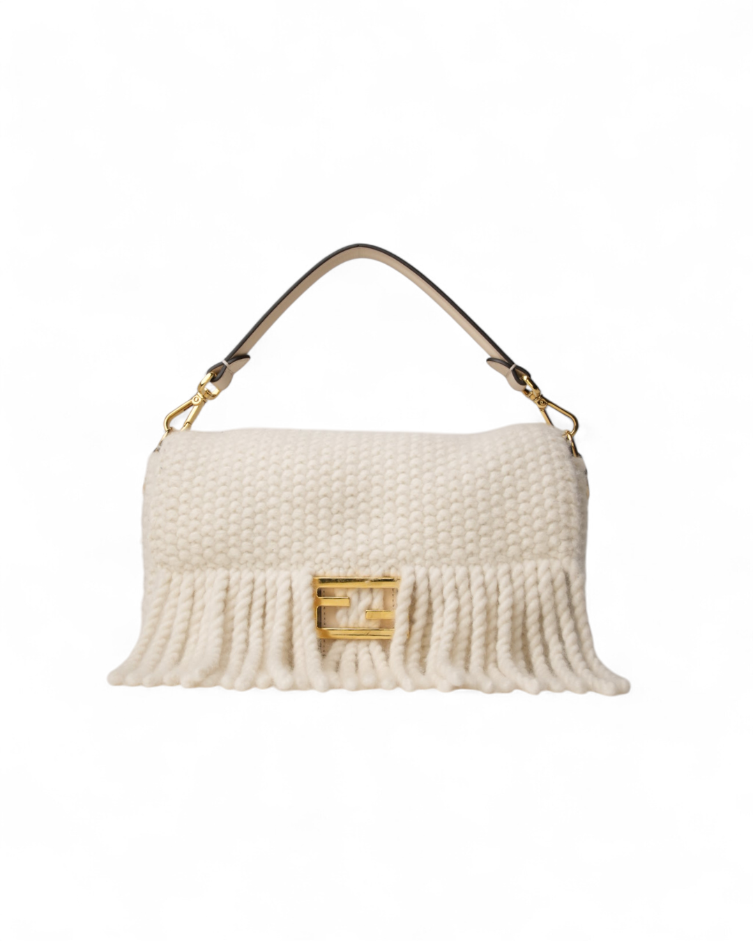 Fendi Baguette Medium Lana Frange Crema