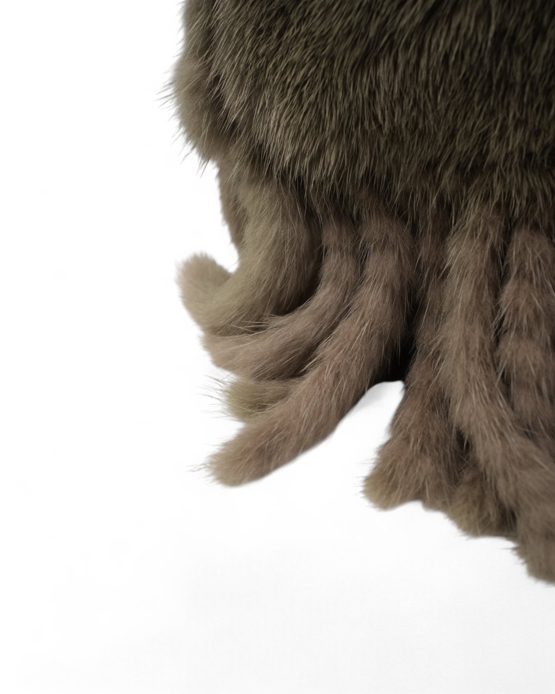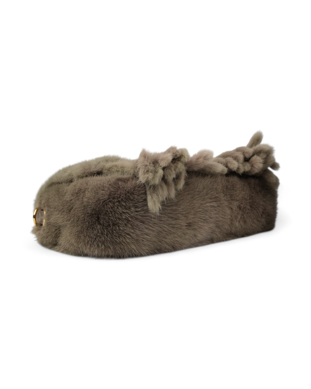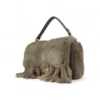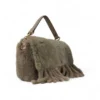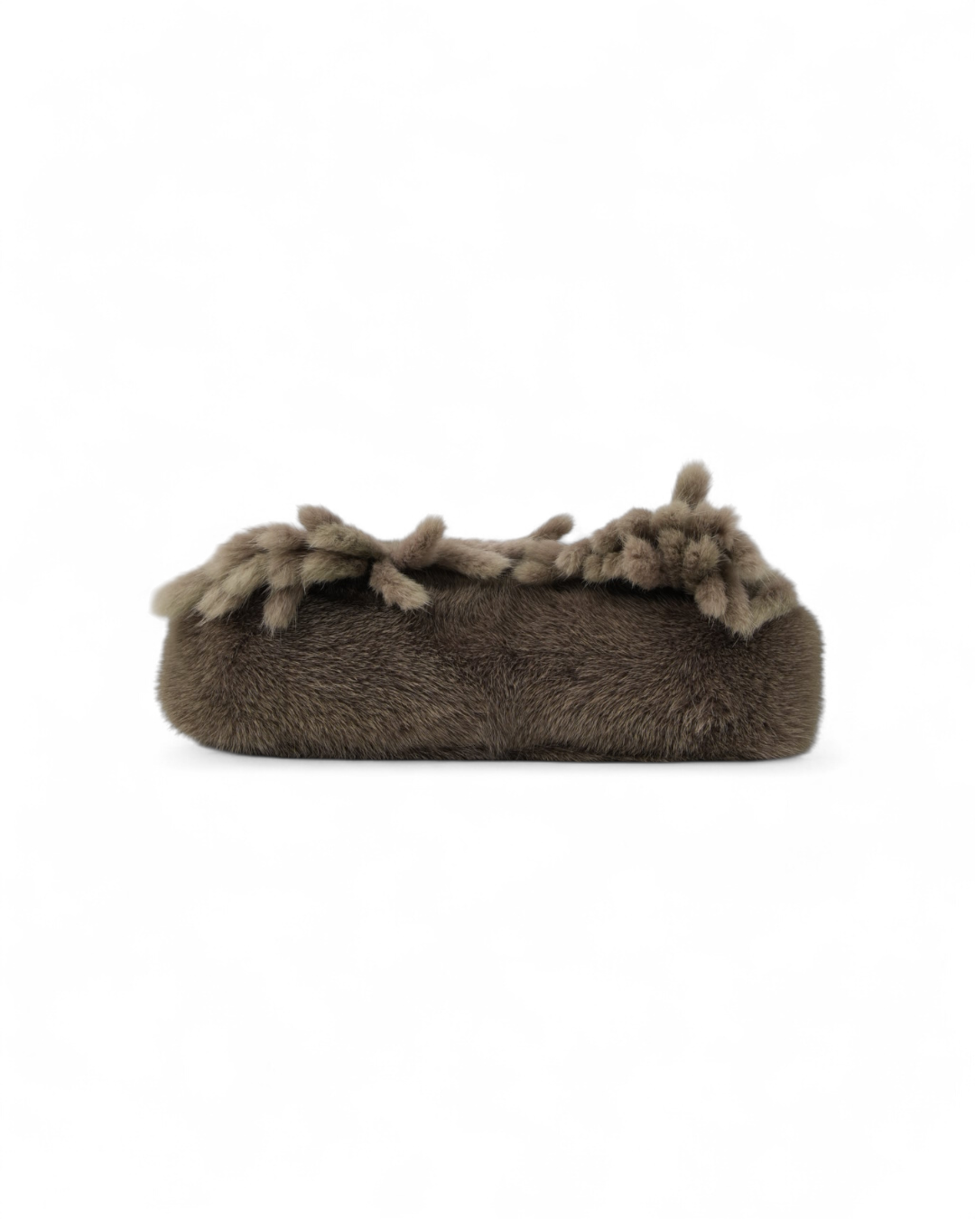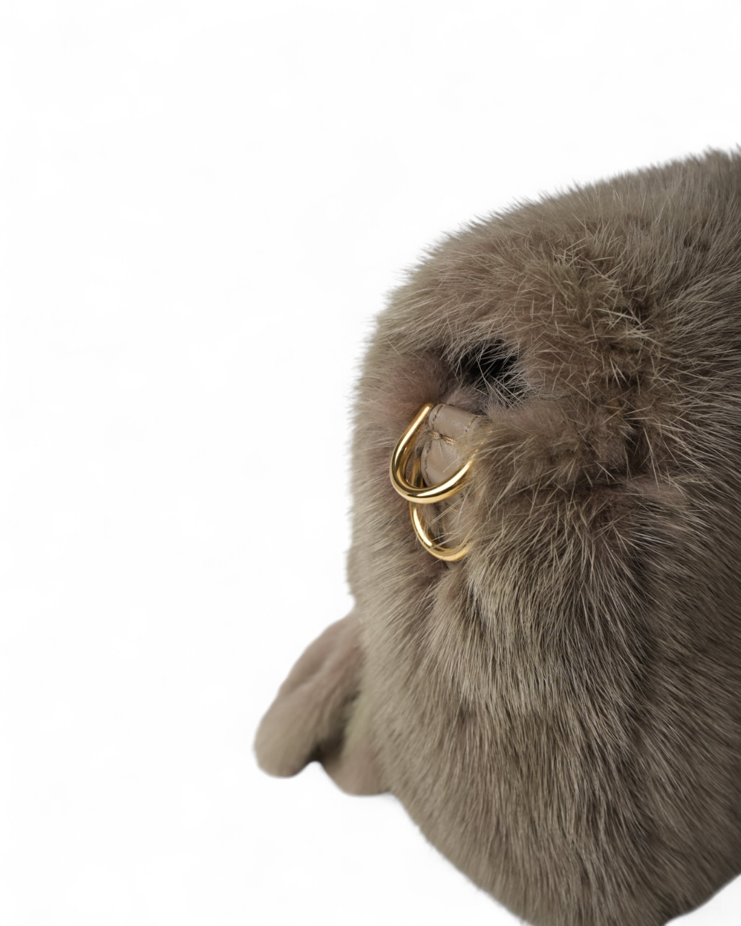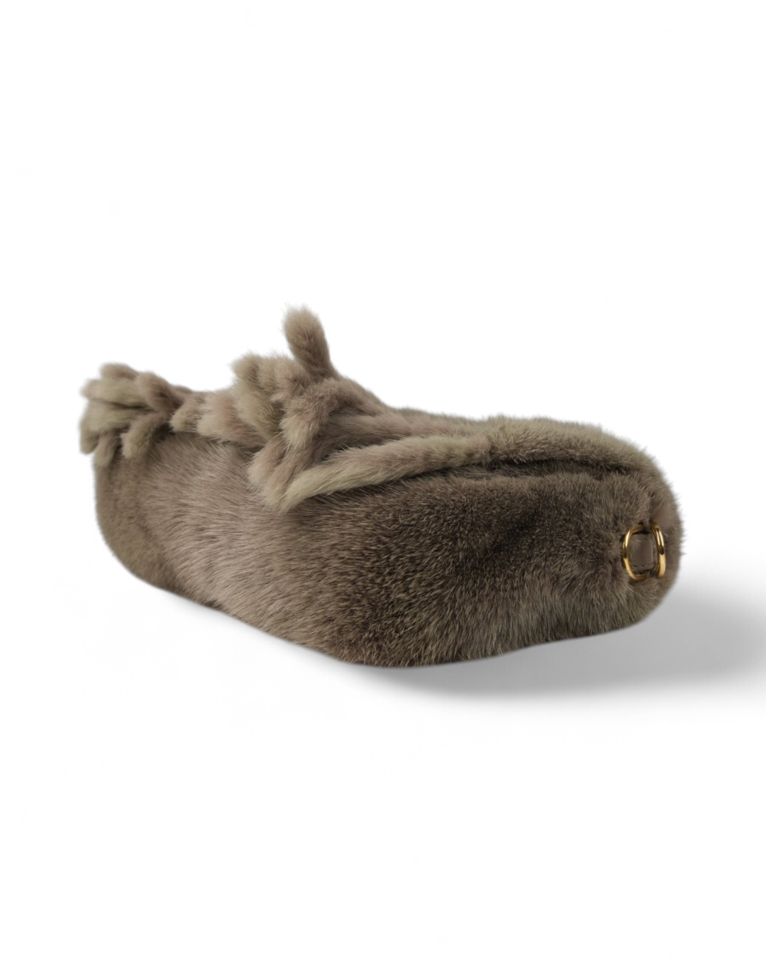 Borsa firmata Fendi, modello Baguette nella misura medium, realizzata in visone tortora con hardware dorato. Dotata di una patta con classico logo del brand “FF” con chiusura calamitata, internamente rivestita in pelle liscia marrone con comoda tasca, la borsa è abbastanza capiente. Munita di una tracolla rimovibile in pelle, per una comoda portata a spalla o a tracolla. L’articolo si presenta in condizioni pari al nuovo.