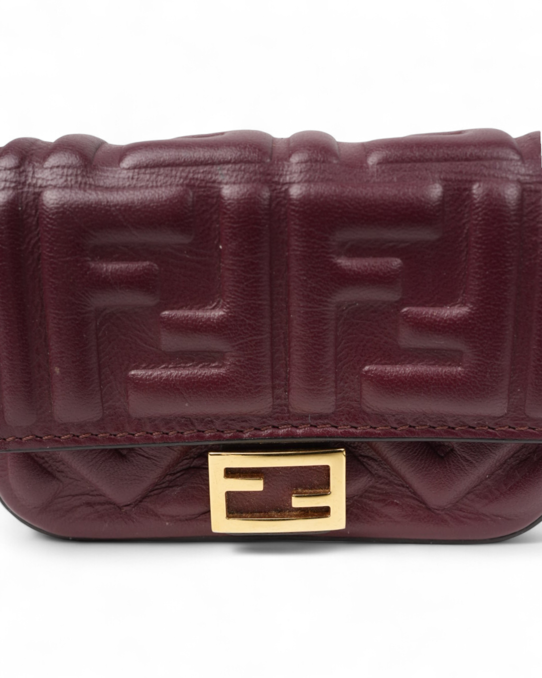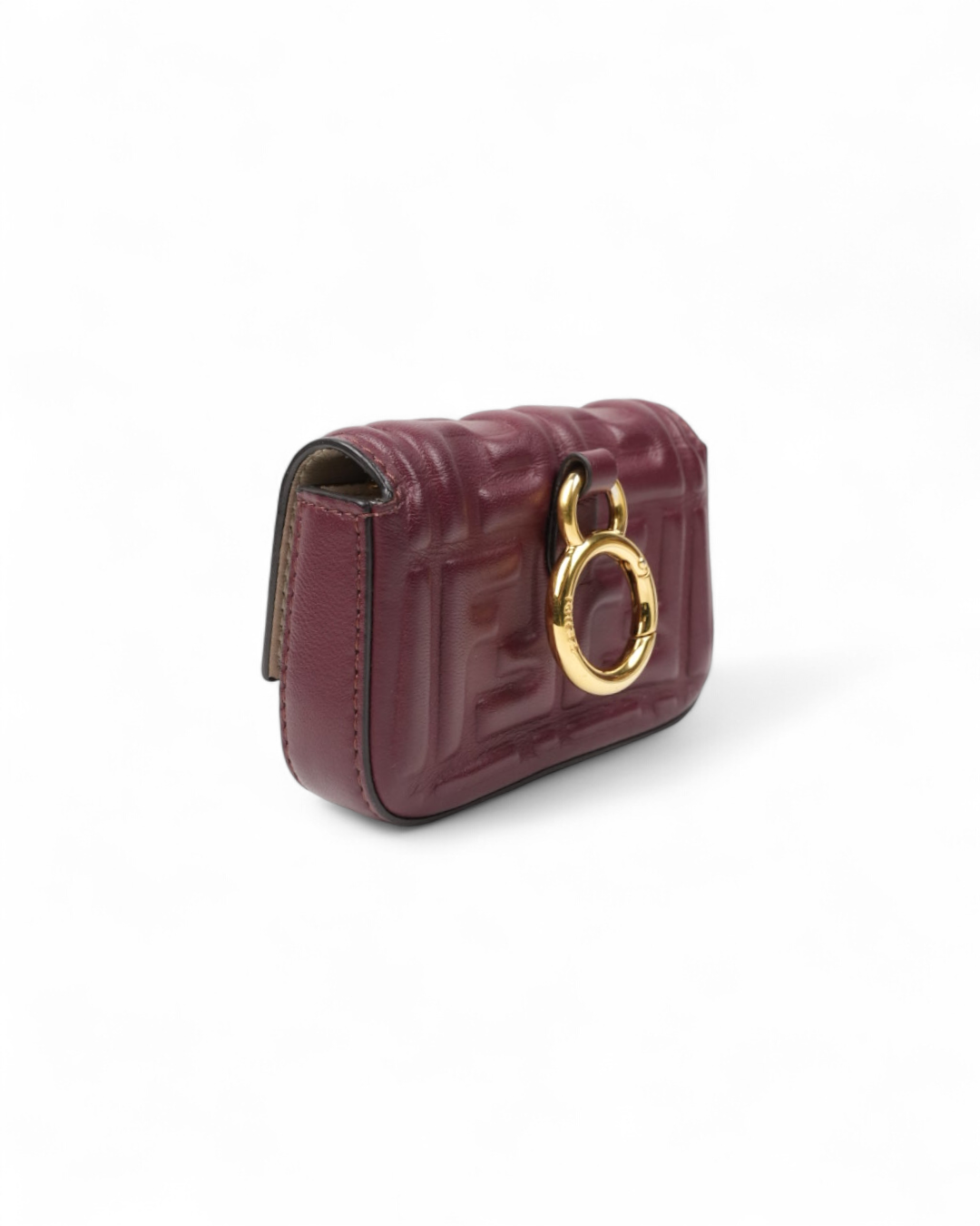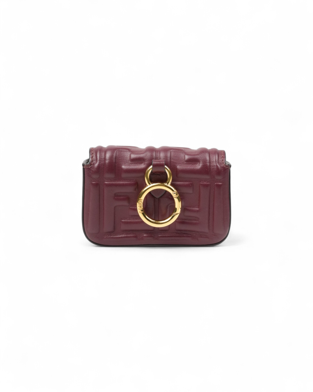 Fendi Charm Nano Baguette FF Embossed Bordeaux