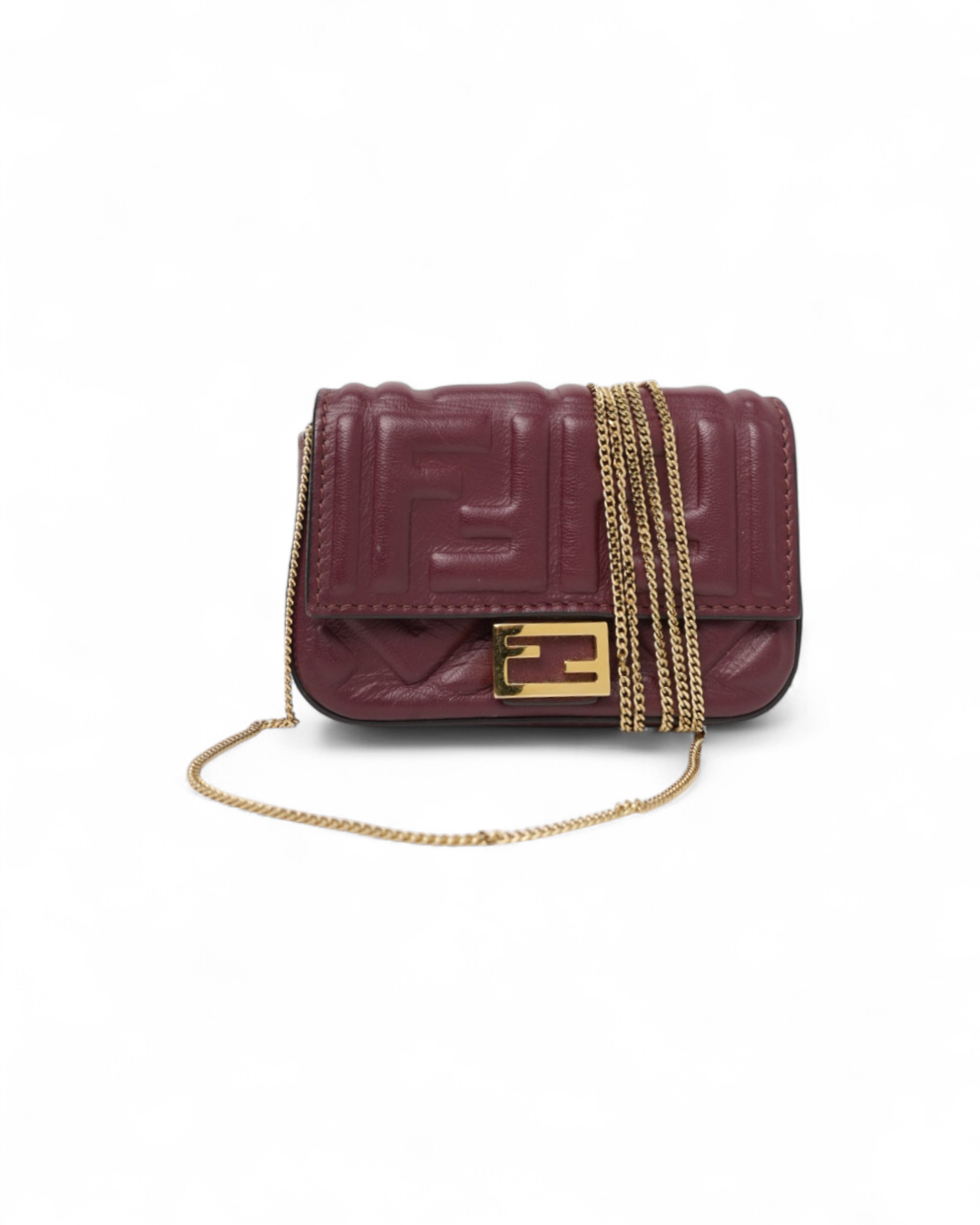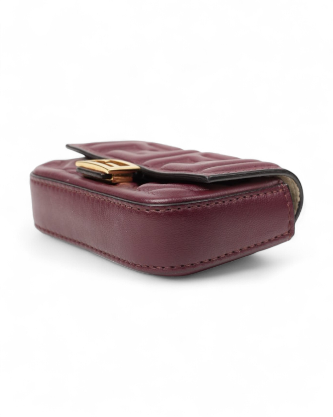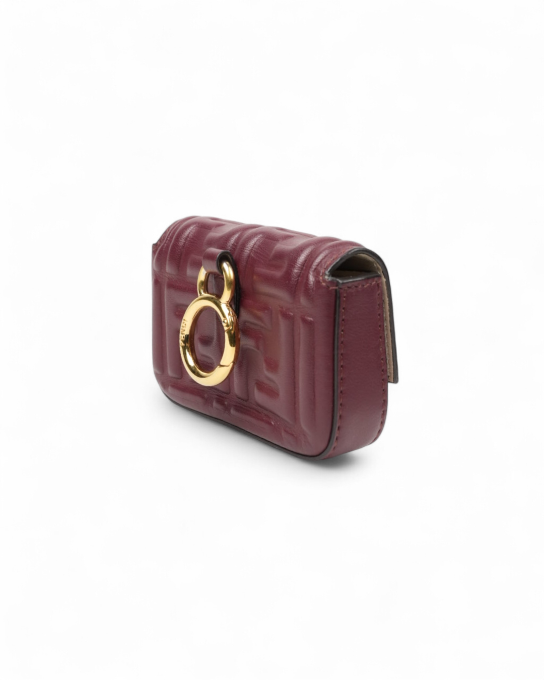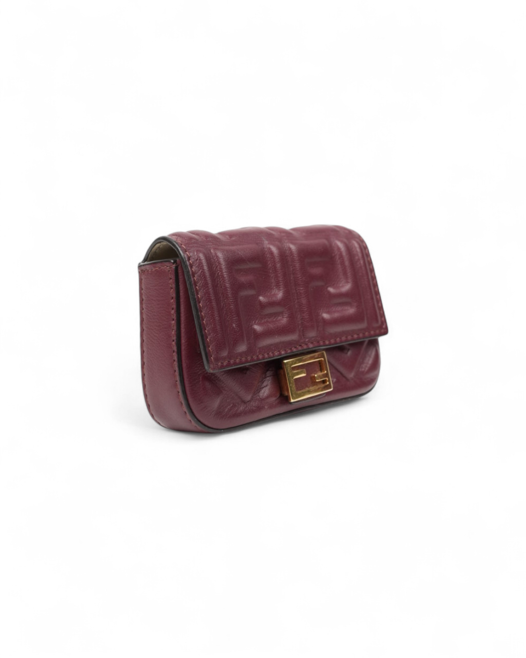 Fendi Charm Nano Baguette FF Embossed Bordeaux