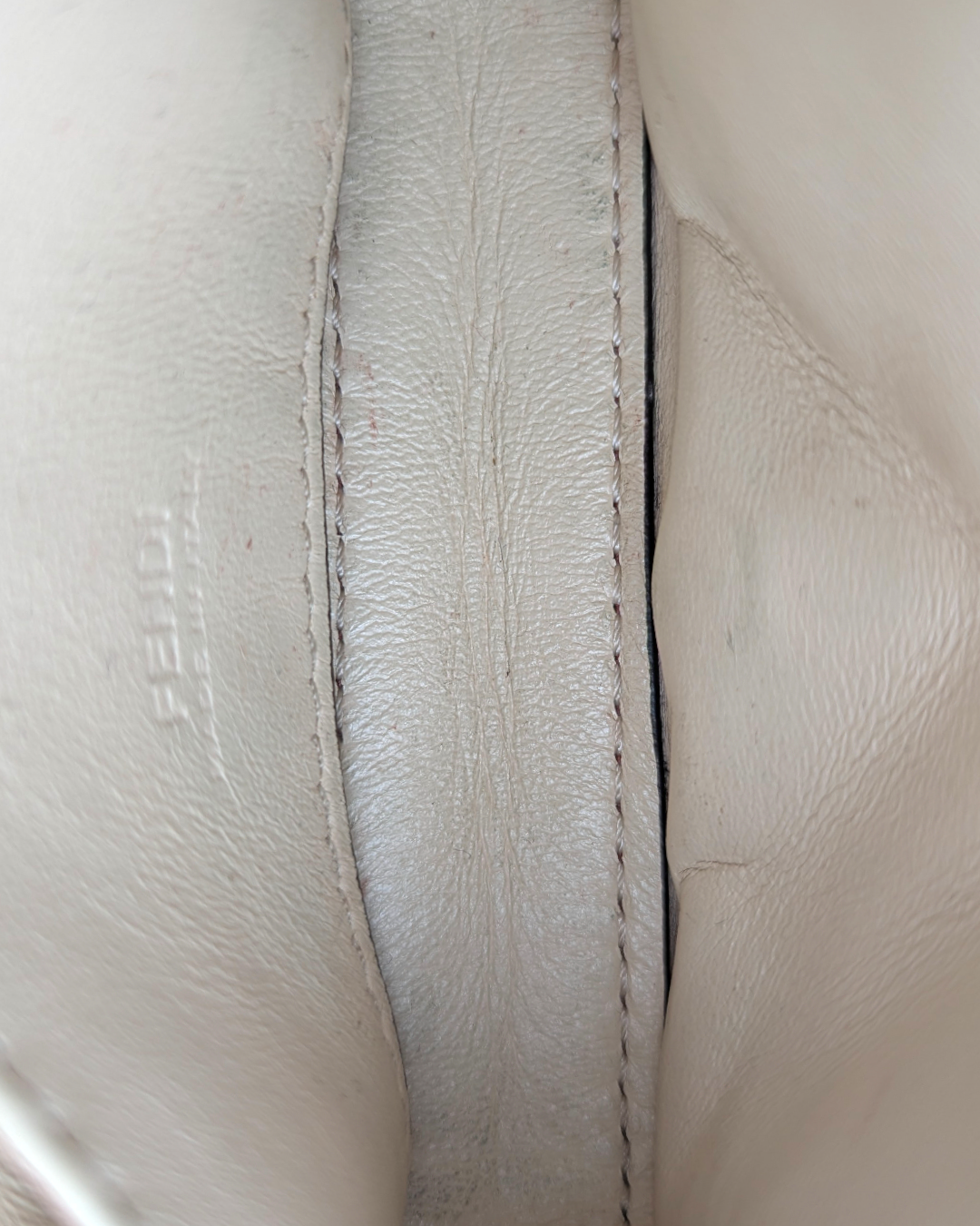 Charm firmato Fendi, modello baguette nano, realizzato in pelle nella fantasia FF Embossed con rifiniture nere e hardware dorato. Dotata di una patta frontale con classico logo del brand “FF” e chiusura a clip. Internamente rivestita in pelle liscia beige con una piccola fessura, capiente per l’essenziale. Munita di un gancio e di una tracolla rimovibile sottile in catena dorata, per una comoda portata a spalla o indossarla come charm. L’articolo si presenta in condizioni pari al nuovo.