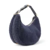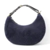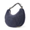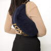 Borsa firmata Fendi, linea Fendigraphy nella misura small, realizzata in pelliccia sintetica nella colorazione blu con hardware dorato. Dotata di una chiusura semicircolare a zip, internamente rivestita in tela, la borsa è abbastanza capiente. Munita di un manico regolabile e rimovibile in pelle, per una comoda portata a spalla o a mano. Decorata con lettering “FENDI” in metallo con finitura oro vintage sul fondo. Presenta dei ganci che permettono l’aggiunta di una tracolla per indossala cross-body. L’articolo si presenta in condizioni pari al nuovo.