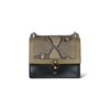 Borsa firmata Fendi, modello Kan I, misura small. Realizzata in pelle tricolor con inserti in pelle nera e hardware argentati. Dotata di una patta frontale con dettaglio in pitone con una chiusura ad incastro, internamente rivestita in tessuto scamosciato tono su tono con comoda tasca, capiente per l’essenziale. Munita di una tracolla scorrevole in catena per una portata a spalla. Si presenta in ottime condizioni.