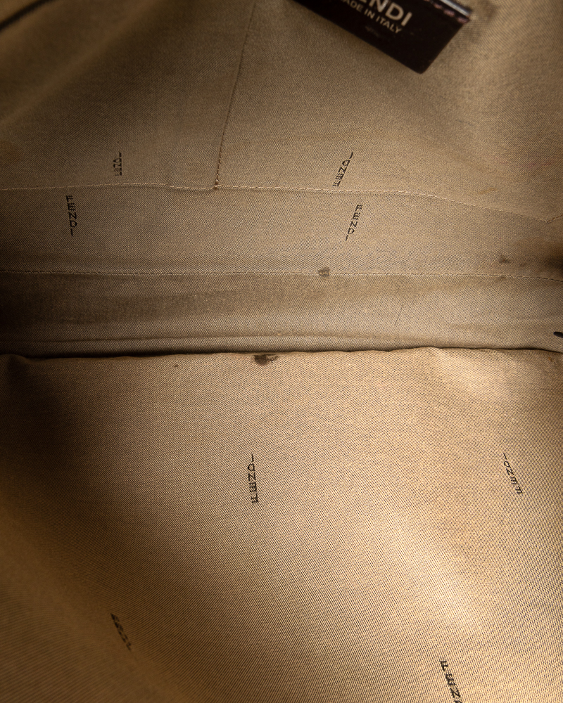 Borsa firmata Fendi, modello messanger nella misura large, realizzata in tela nella classica fantasia FF Logomania con inserti in pelle e hardware argento. Dotata di una patta con chiusura calamitata, internamente rivestita in tela beige con comode tasche, la borsa è abbastanza capiente. Munita di una tracolla in tessuto regolabile, per una comoda portata a spalla o a tracolla. L'articolo si presenta in buone condizioni, con segni di usura visibili in foto.
