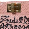 Borsa firmata Fendi, modello Peekaboo, misura mini, realizzata in pelle di pitone rosa, con ricami in rialzo neri con mini paillettes. Dotata di un manico centrale per portata a mano e di una tracolla sottile regolabile e rimovibile. Munita di doppia chiusura a girello fonte e retro, inernamente rivestita in pelle liscia rosa, con presenza di una piccola tasca. Si presenta in ottime condizioni.