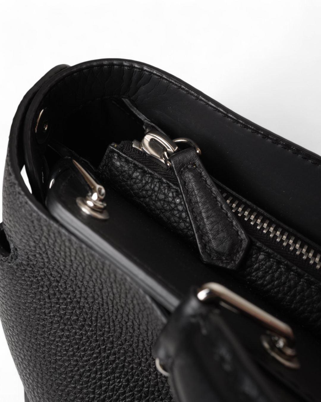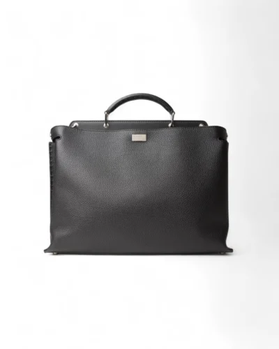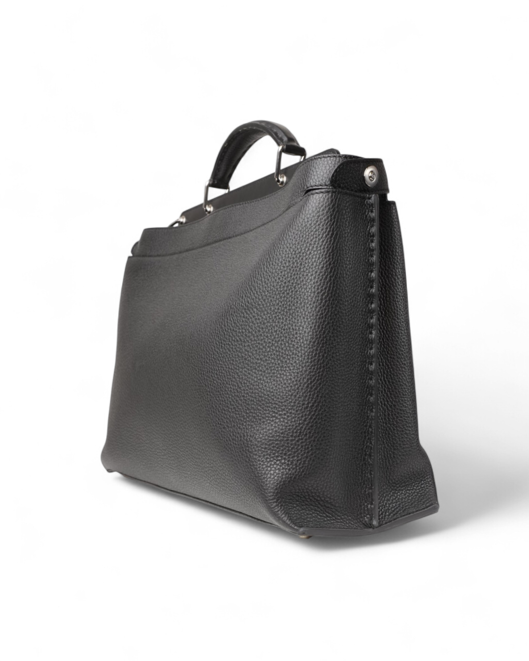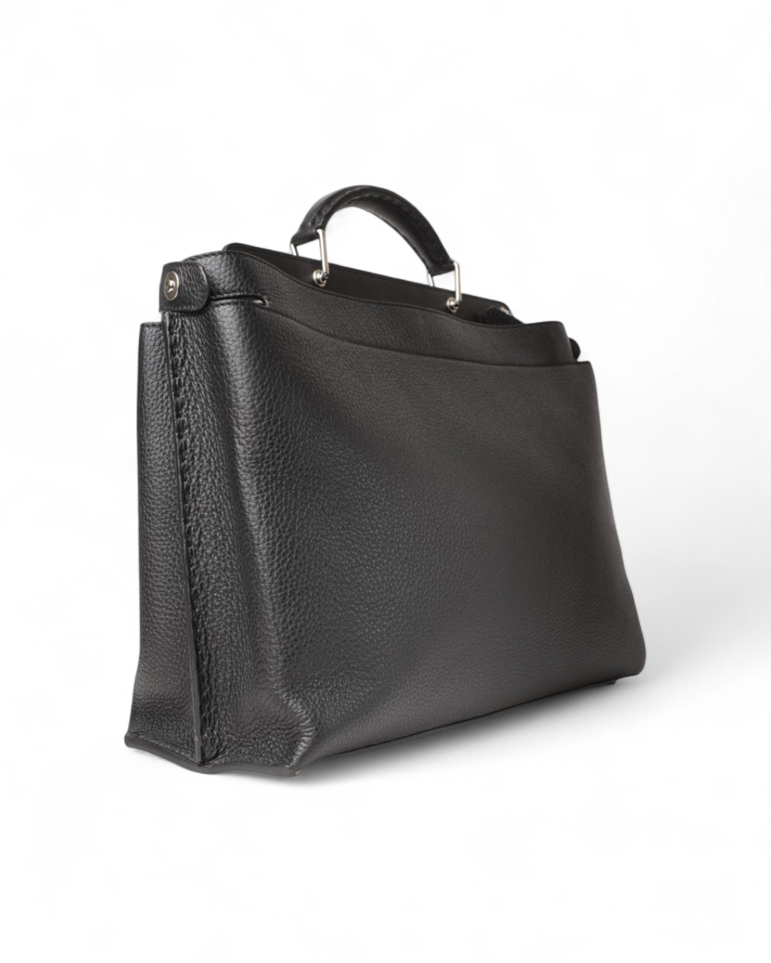 Borsa firmata Fendi, modello Peekaboo Utility nella misura large, realizzata in pelle granulata nera con hardware argento. Dotata di una doppia chiusura a zip e ad incastro, internamente rivestita in pelle liscia tono su tono con comode tasche, la borsa è abbastanza capiente. Munita di doppio manico in pelle e di una tracolla rimovibile e regolabile, per una comoda portata a spalla o a tracolla. L’articolo si presenta in ottime condizioni.