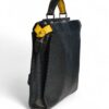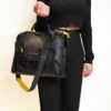 Borsa firmata Fendi, modello Peekaboo Utility nella misura Large, realizzata in pelle granulata di colore nero con inserti gialli e dettagli in hardware argentato. La borsa è dotata di una doppia chiusura superiore a zip e a incastro, per una maggiore sicurezza e praticità. Internamente, è rivestita in tessuto scamosciato tono su tono, con comode tasche che la rendono abbastanza capiente per l’essenziale.Provvista di un manico rigido superiore, la borsa può essere comodamente portata a mano, ma è anche dotata di una tracolla rimovibile e regolabile, che consente di indossarla a spalla. La borsa presenta anche comode tasche sulla parte frontale, ideali per un rapido accesso agli oggetti più utilizzati. L’articolo si presenta in ottime condizioni.