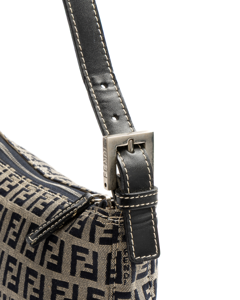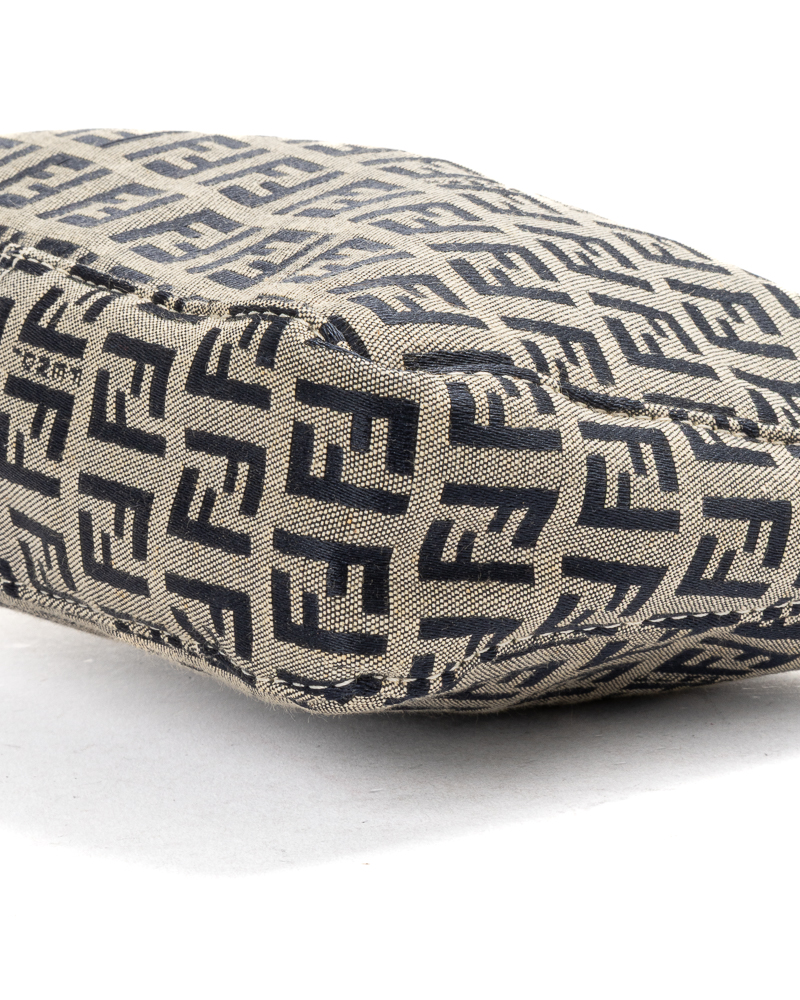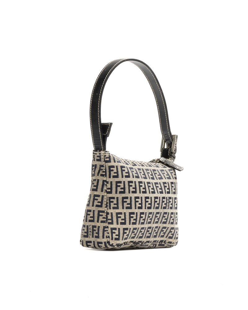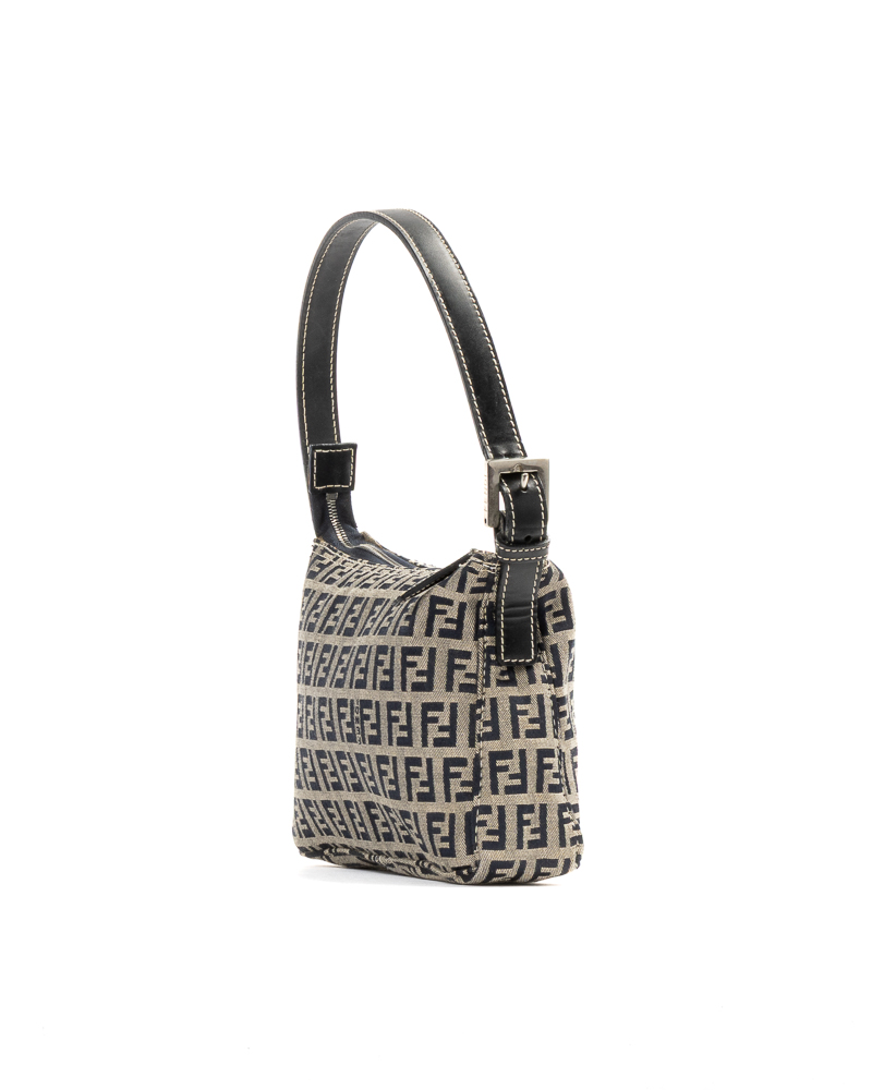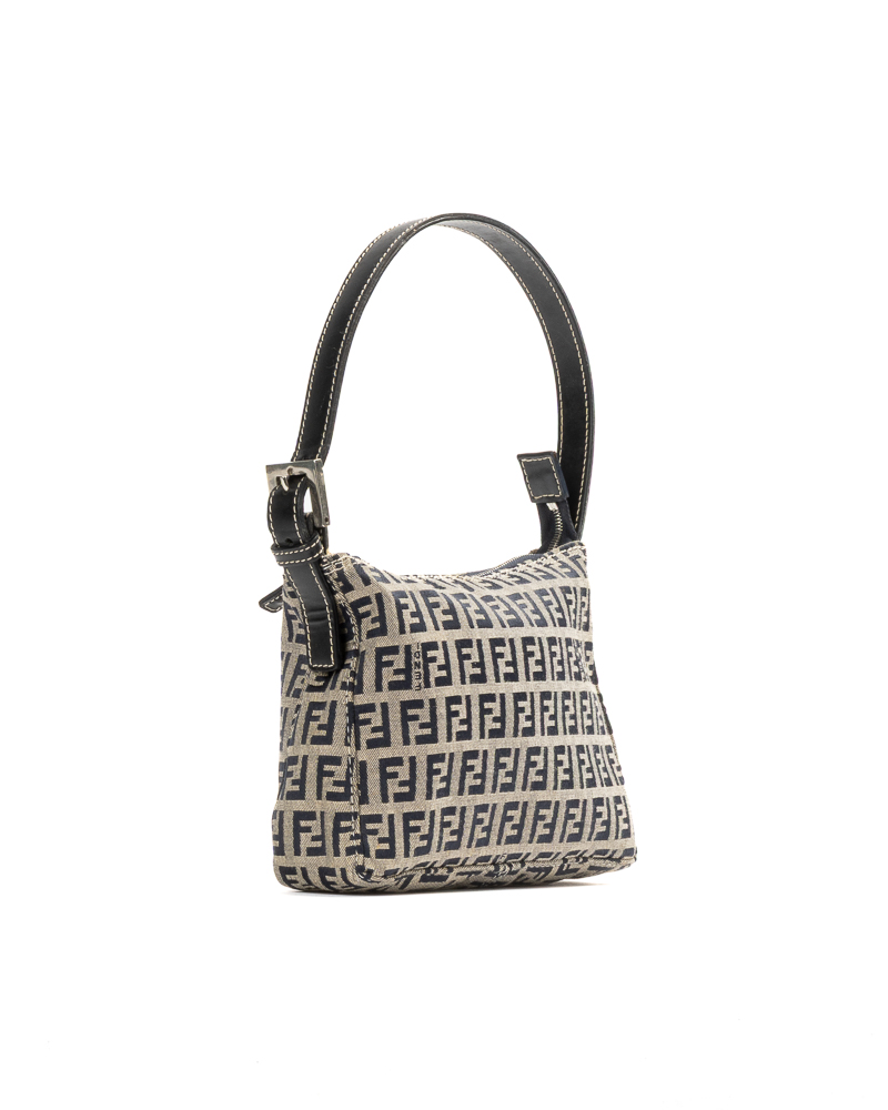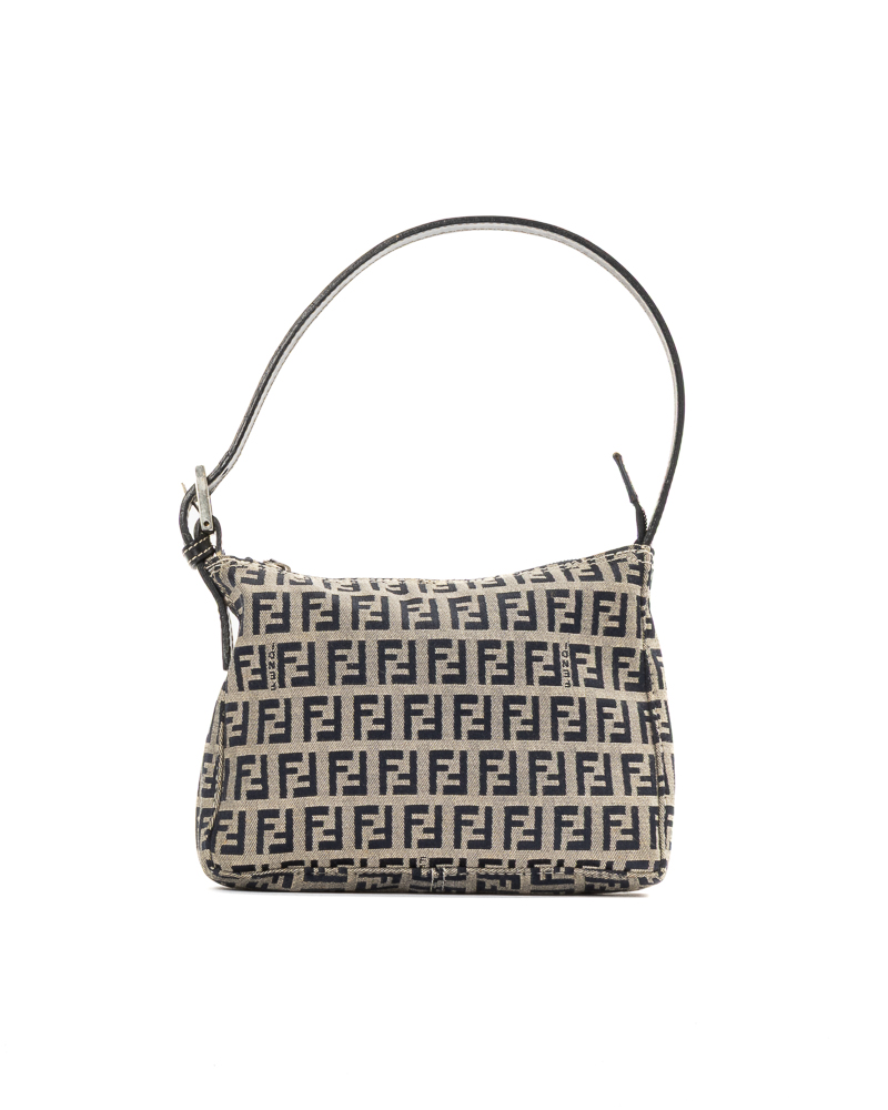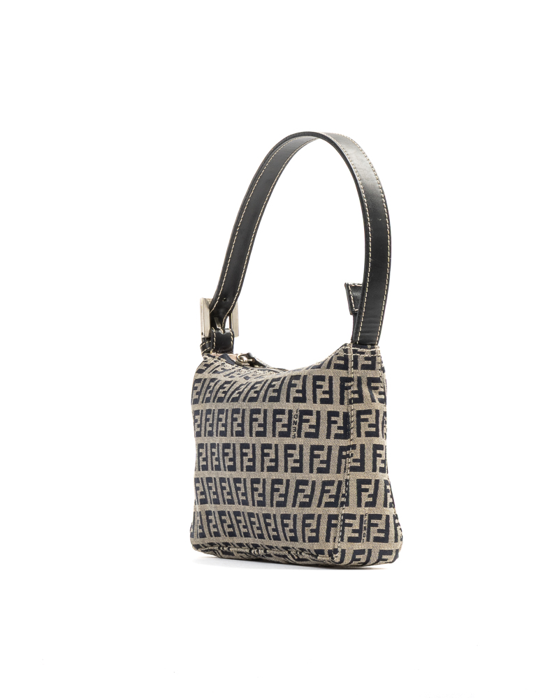 Borsa firmata Fendi, misura small, realizzata in tela Blu nella classica fantasia FF Zucchino con rifiniture in pelle e hardware argento. Dotata di una chiusura superiore a zip, internamente rivestita in tela beige, la borsa è capiente per l’essenziale. Munita di un manico regolabile in pelle blu, per una comoda portata a mano o a spalla. L’articolo si presenta in ottime condizioni.