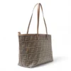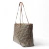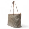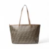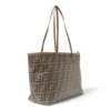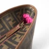 Borsa firmata Fendi, modello Roll Bag nella misura medium, realizzata in tela nella classica fantasia FF Logomania con inserti in pelle e hardware dorato. Dotata di una chiusura superiore a zip, internamente rivestita in tessuto fucsia con due comode tasche, la borsa è abbastanza capiente. Munita di doppio manico in pelle, per una comoda portata a spalla o a mano. L’articolo si presenta in buone condizioni, con segni di usura visibili in foto.