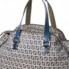 Borsa firmata Fendi, modello Shopper Task nella misura large, realizzata in tela nella classica fantasia FF Logomania con inserti in pelle blu e hardware argento. Dotata di una chiusura superiore a zip, internamente rivestita in tela nera con comoda tasca, la borsa è abbastanza capiente. Munita di doppio manico in pelle, per una comoda portata a mano o a spalla. Completa di una comoda tasca frontale con chiusura calamitata. L’articolo si presenta in buone condizioni, con lievi segni di usura visibili in foto.