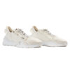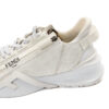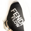 Sneaker firmata Fendi, modello Flow, realizzata in pelle bianca, con lacci elastici regolabili e chiusura con zip laterale. Personalizzata con pattern FF sulla linguetta e tab in gomma con logo a rilievo sul retro del tallone. Dettagli in tessuto con motivo FF bianco e grigio chiaro. Suola running 35 mm in gomma con dettaglio F diagonale tono su tono. Numero 43 IT. L’articolo si presenta in ottime condizioni.
