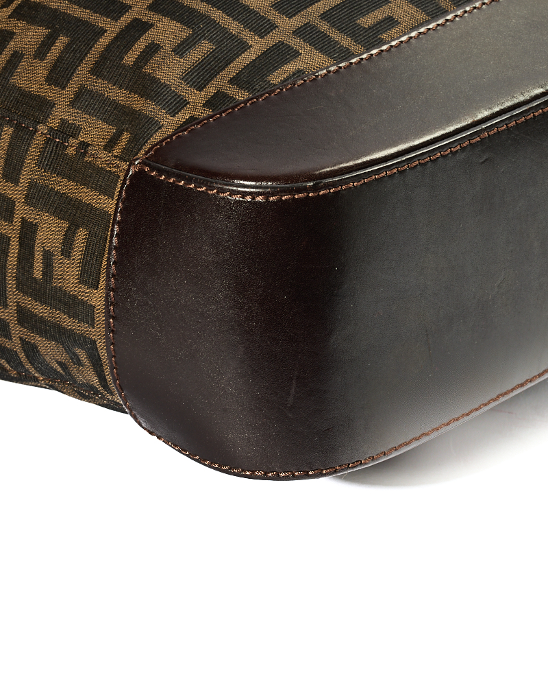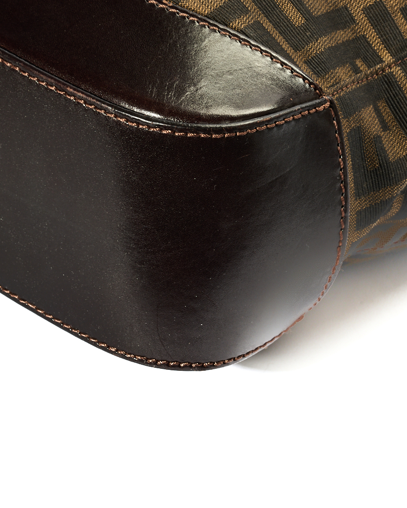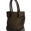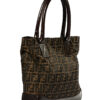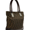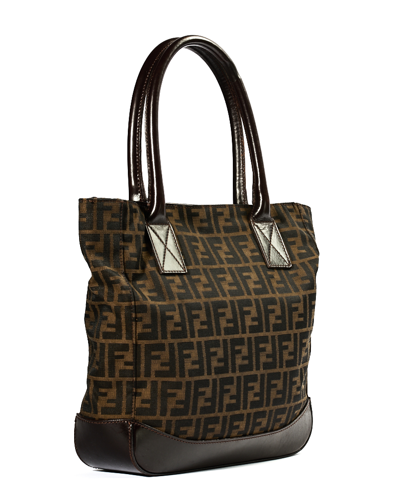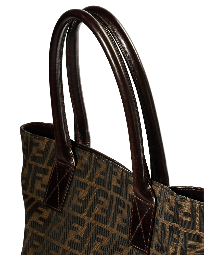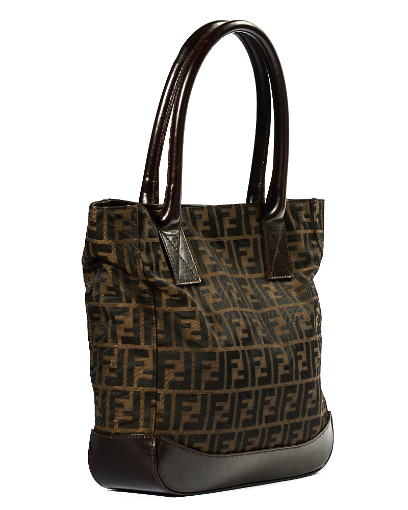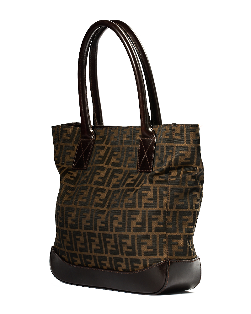Borsa firmata Fendi, modello Tote Vertical nella misura medium, realizzata in tela nella classica fantasia FF Logomania con inserti in pelle marrone e hardware argento. Dotata di una chiusura calamitata, internamente rivestita in tela marrone con comoda tasca, la borsa è abbastanza capiente. Munita di doppio manico in pelle marrone, per una comoda portata a mano o a spalla. L’articolo si presenta in buone condizioni, con segni di usura visibili in foto.