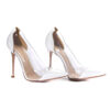 Decolletté firmati Gianvito Rossi, realizzati in pelle bianca con rifiniture in pvc trasparente. Numero 37IT. Presentano un tacco alto 10.5 centimetri. L’articolo si presenta in buone condizioni.
