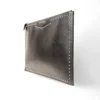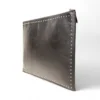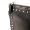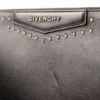 Pochette firmata Givenchy, modello Antigona nella misura medium, realizzata in pelle nera arricchita da borchie e hardware argento. Dotata di una chiusura superiore a zip, internamente rivestita in tela tono su tono, la pochette è abbastanza capiente. L’articolo si presenta in buone condizioni, con piccole usure sulla pelle.