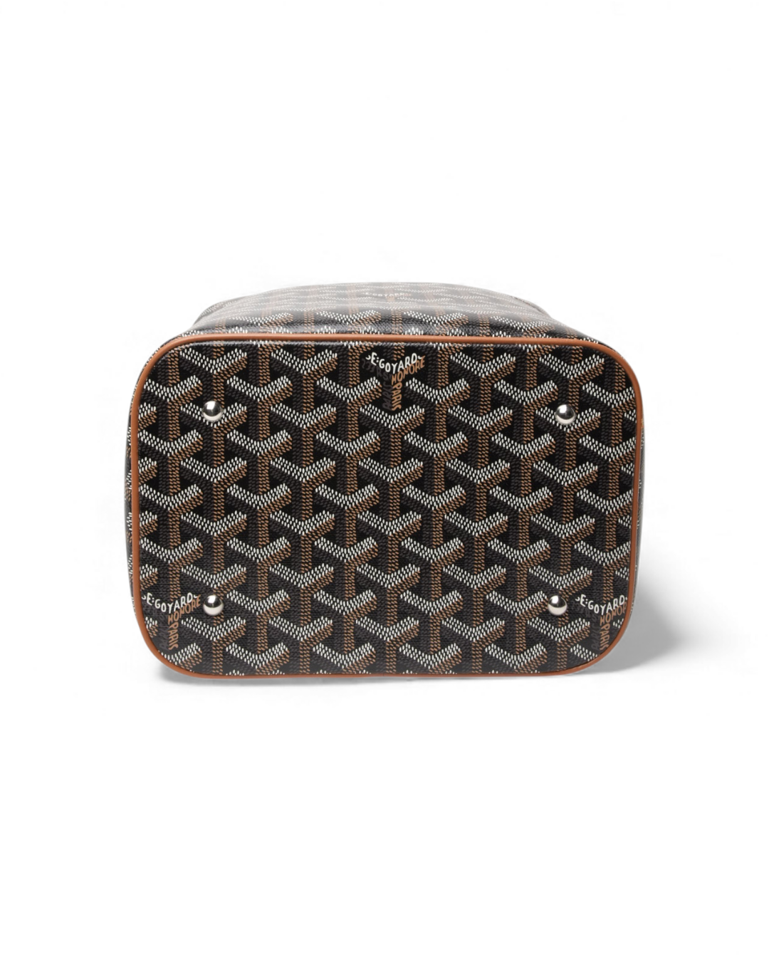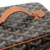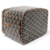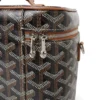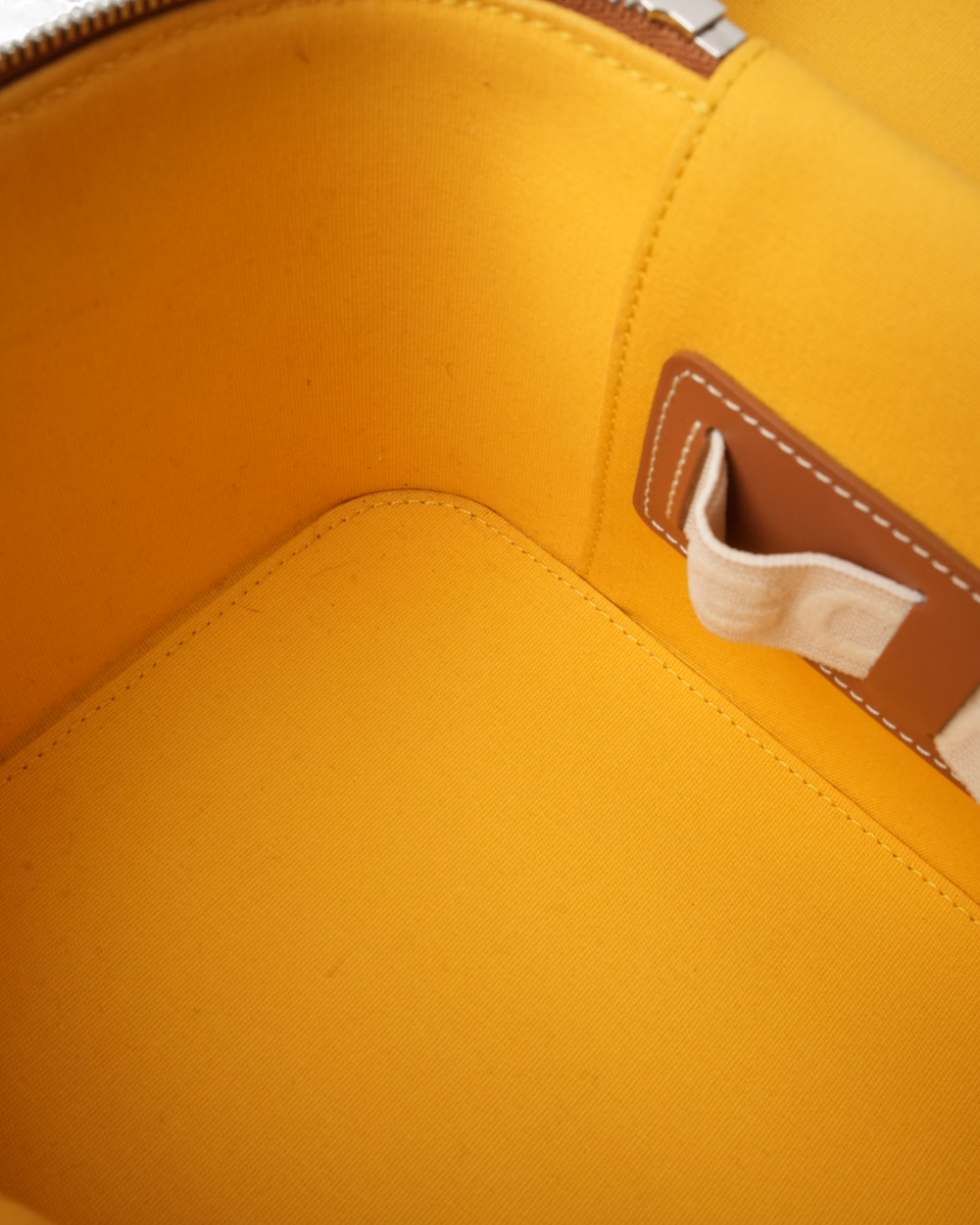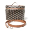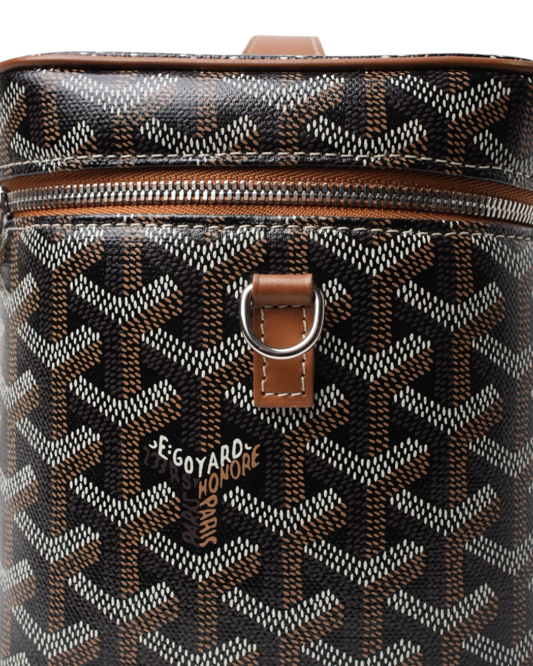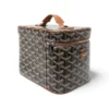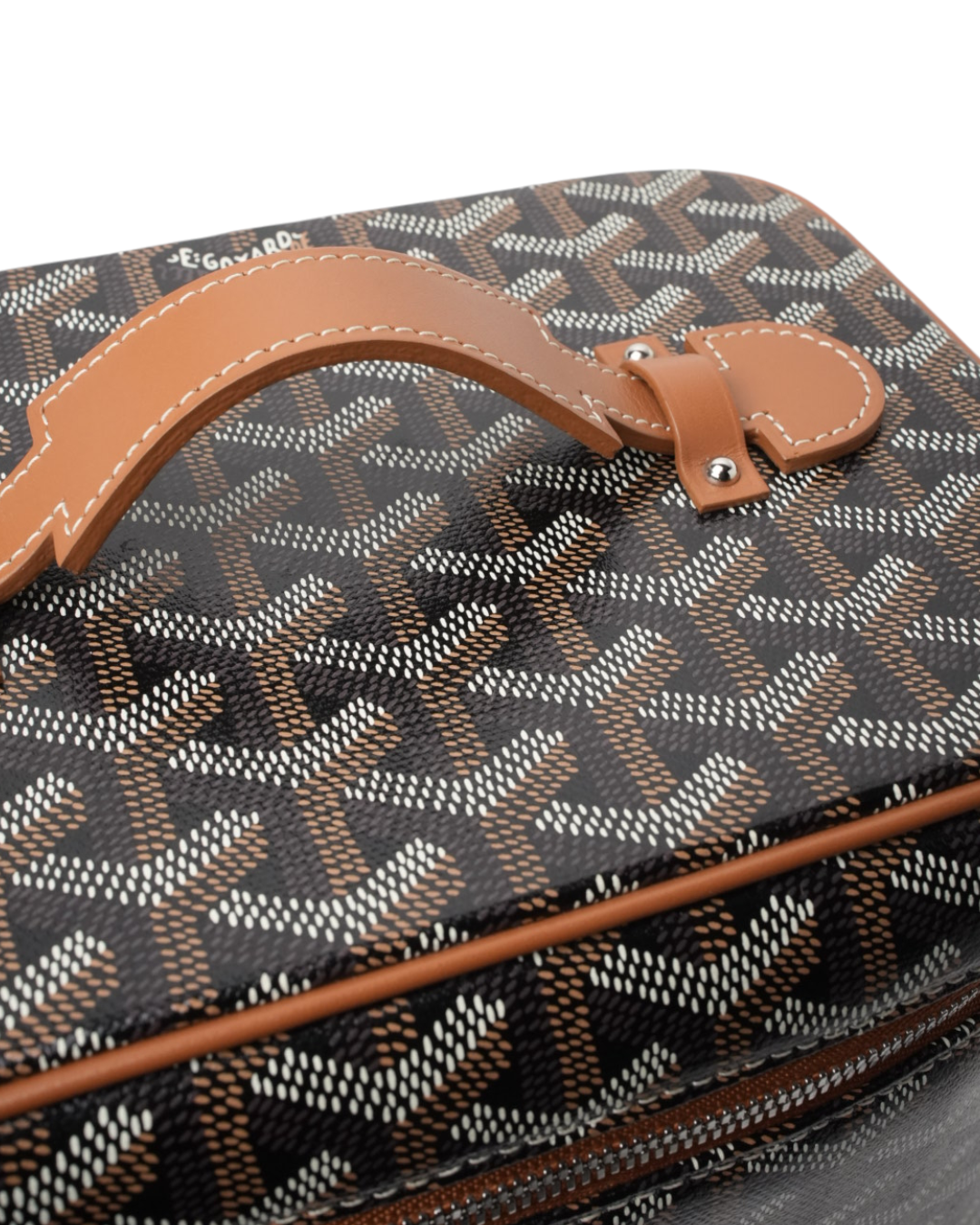 Borsa firmata Goyard, modello Vanity Case nella misura small, realizzata in tela nella fantasia Goyardine con rifiniture in pelle marrone e hardware argento. Dotata di una chiusura superiore a zip con doppio cursore, internamente rivestita in tela gialla con comodi elastici, la borsa è abbastanza capiente. Munita di un manico e di una tracolla rimovibile e regolabile, per una comoda portata a mano o a spalla. L’articolo si presenta in condizioni pari al nuovo.