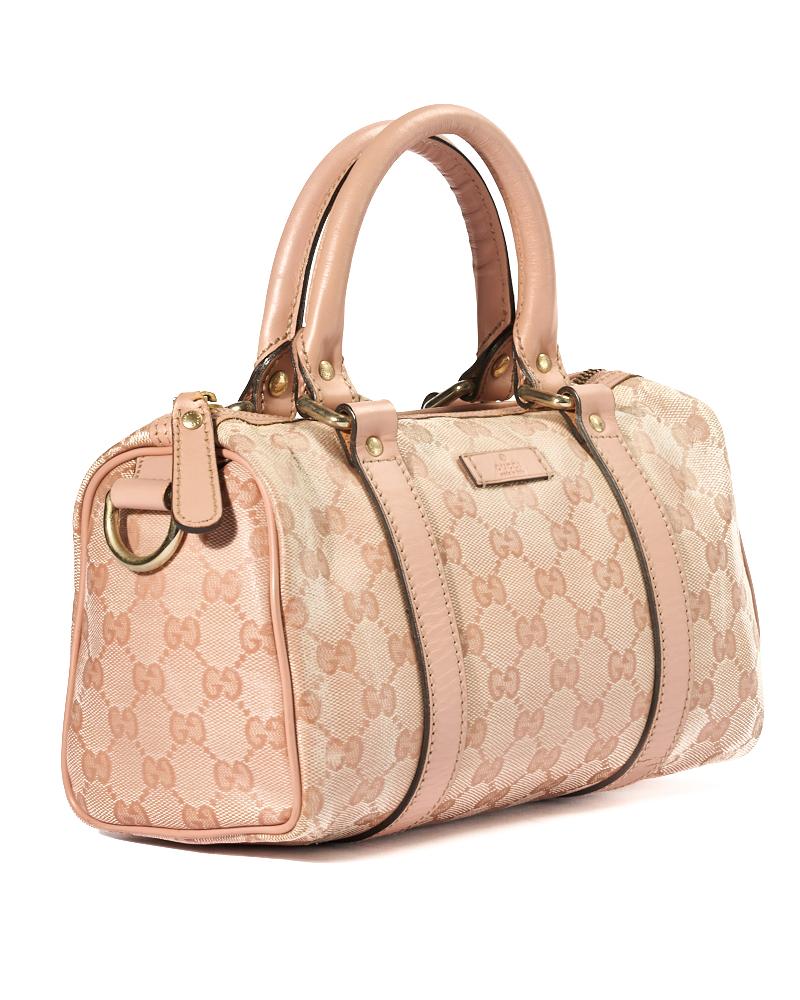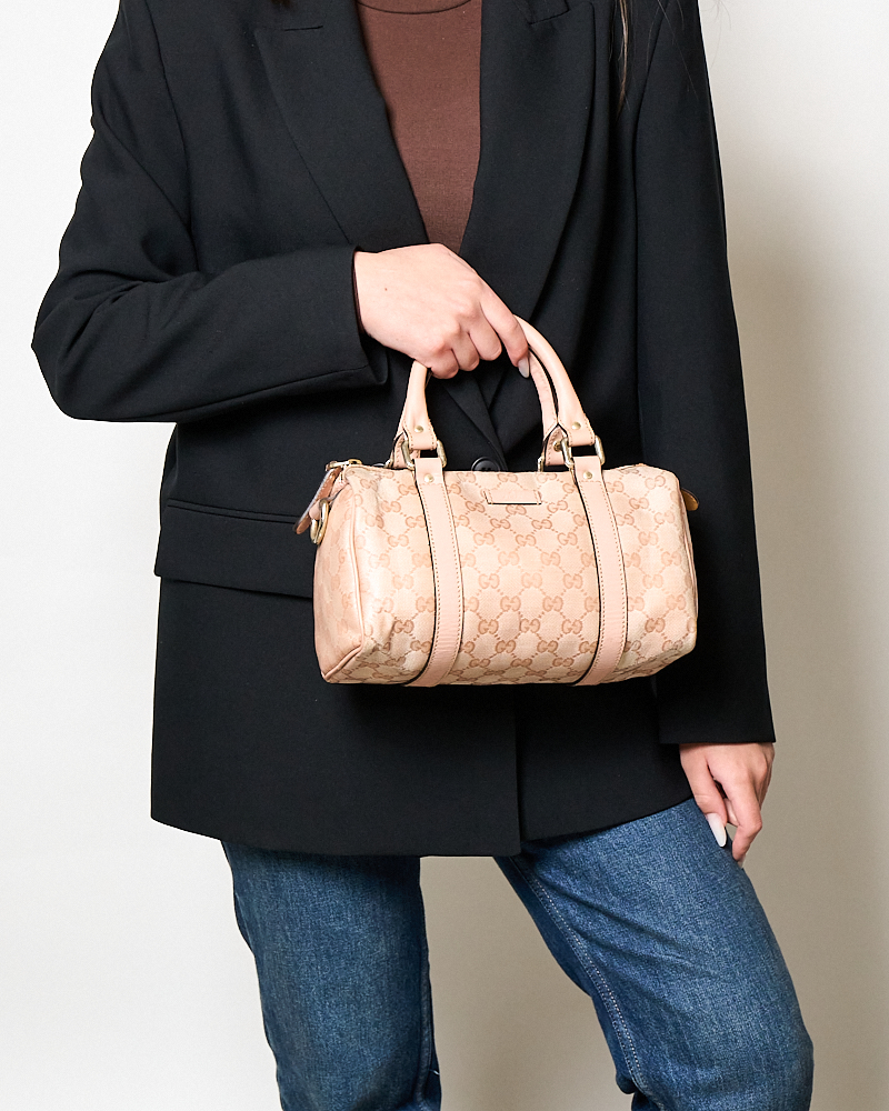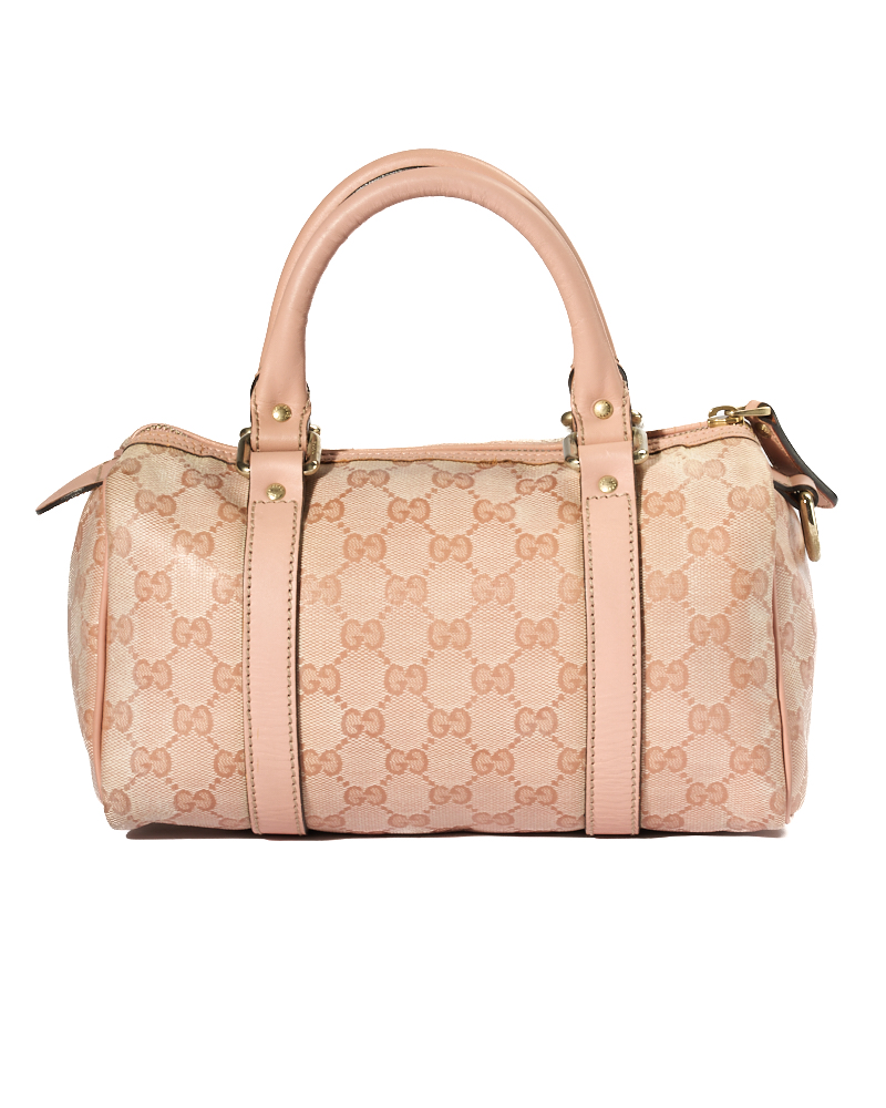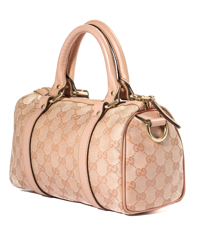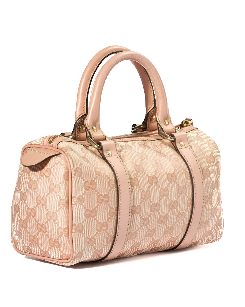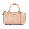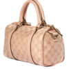 Borsa firmata Gucci, modello Boston nella misura small, realizzato in tela nella classica fantasia GG Crystal con rifiniture in pelle rosa con hardware dorato. Dotato di una chiusura superiore a zip, internamente rivestita in tela marrone con comoda tasca, la borsa è capiente per l’essenziale. Munito di doppio manico in pelle, per una comoda portata a mano. L’articolo si presenta in buone condizioni.