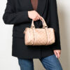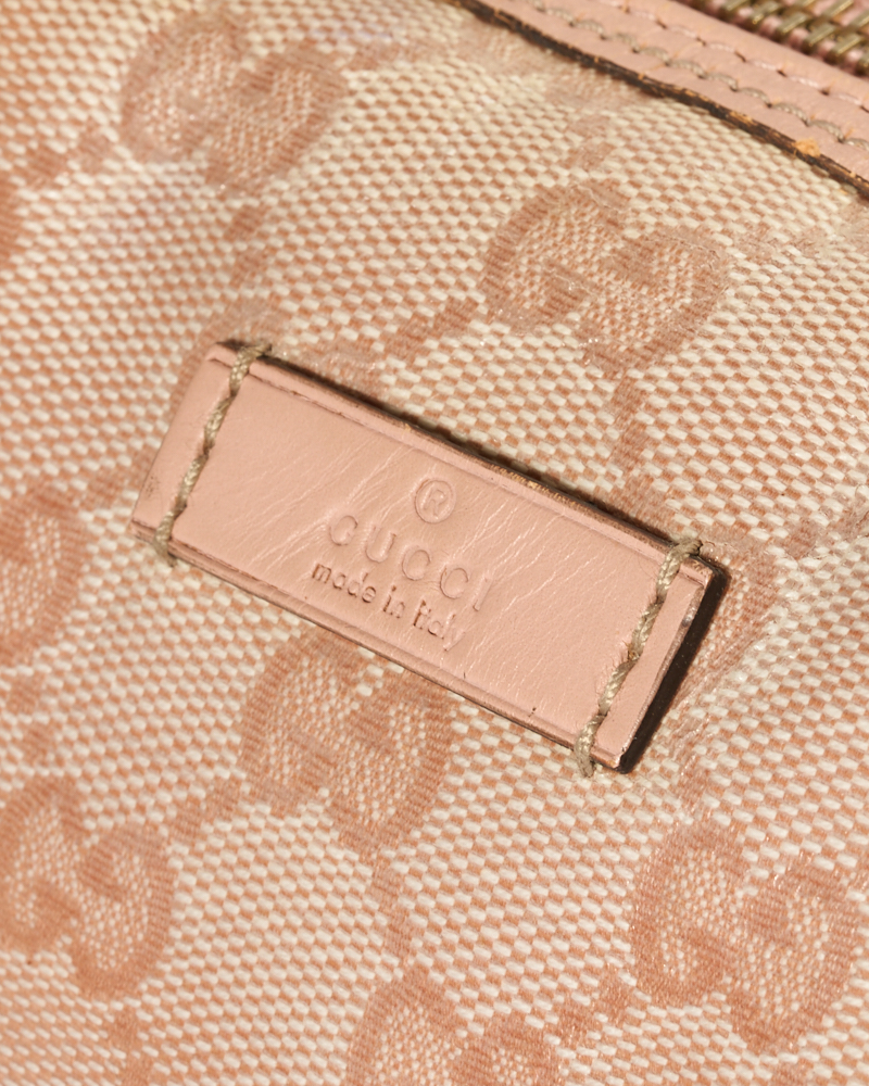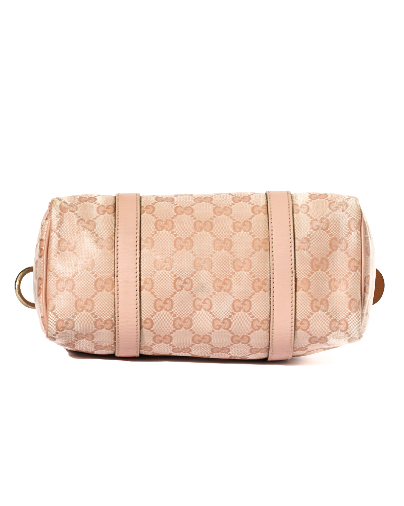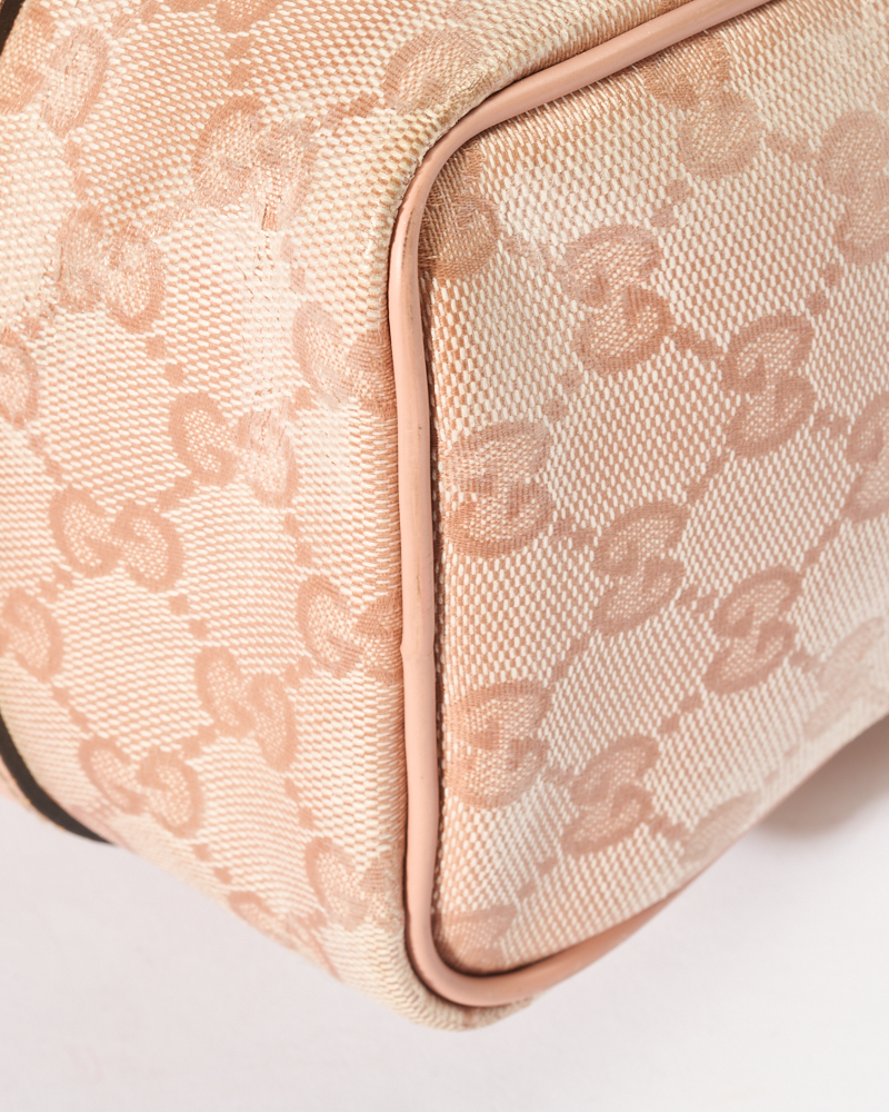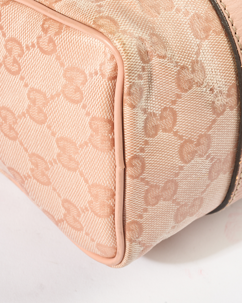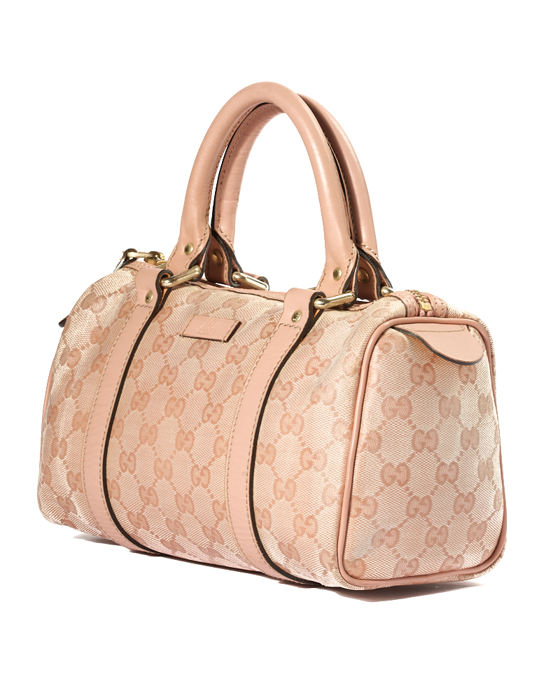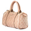 Borsa firmata Gucci, modello Boston nella misura small, realizzato in tela nella classica fantasia GG Crystal con rifiniture in pelle rosa con hardware dorato. Dotato di una chiusura superiore a zip, internamente rivestita in tela marrone con comoda tasca, la borsa è capiente per l’essenziale. Munito di doppio manico in pelle, per una comoda portata a mano. L’articolo si presenta in buone condizioni.